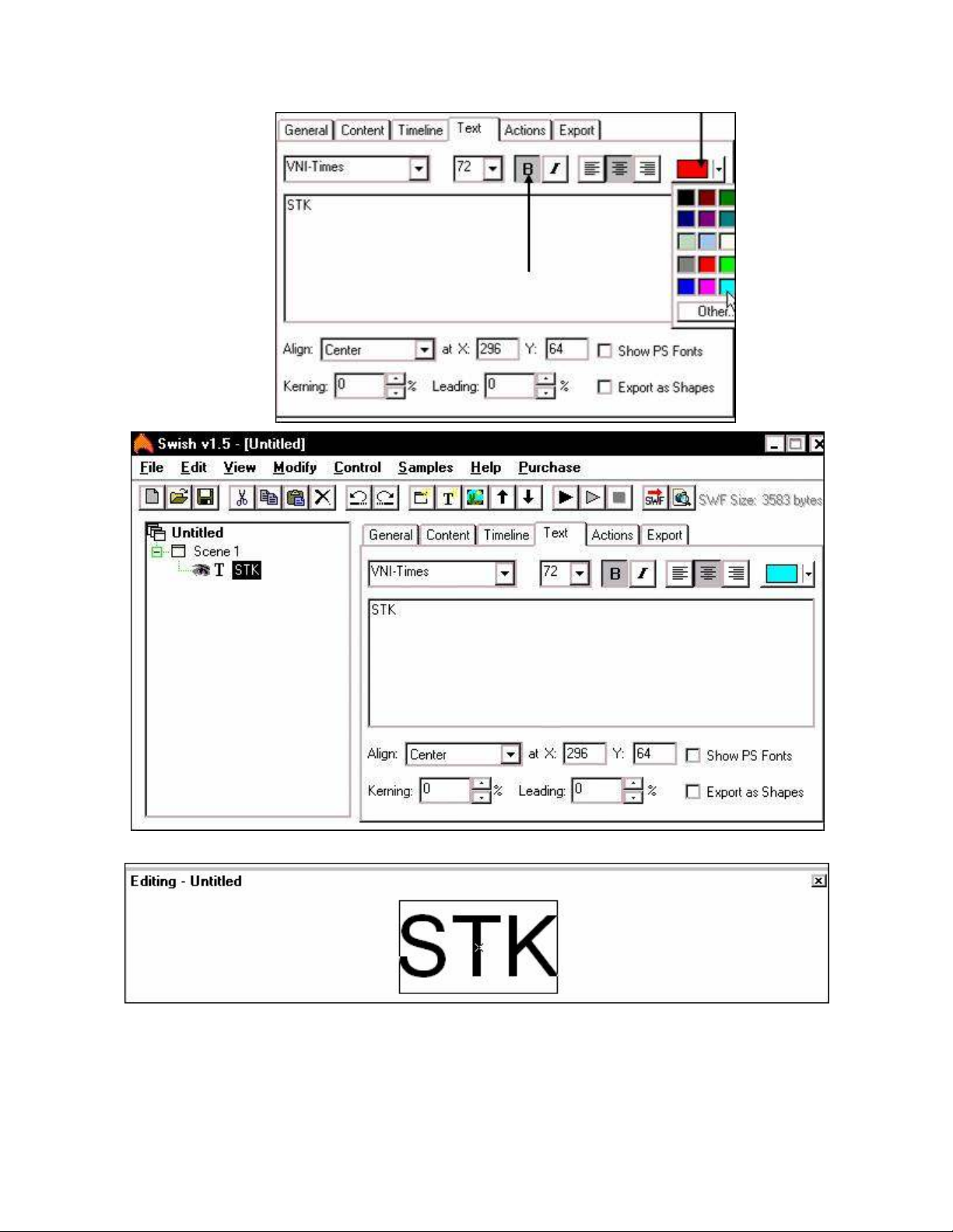 Trên cửa sổ màn hình, chọn tab Text nhập chữ STKBOOK.COM, font VNI-Top, kích cỡ 48,