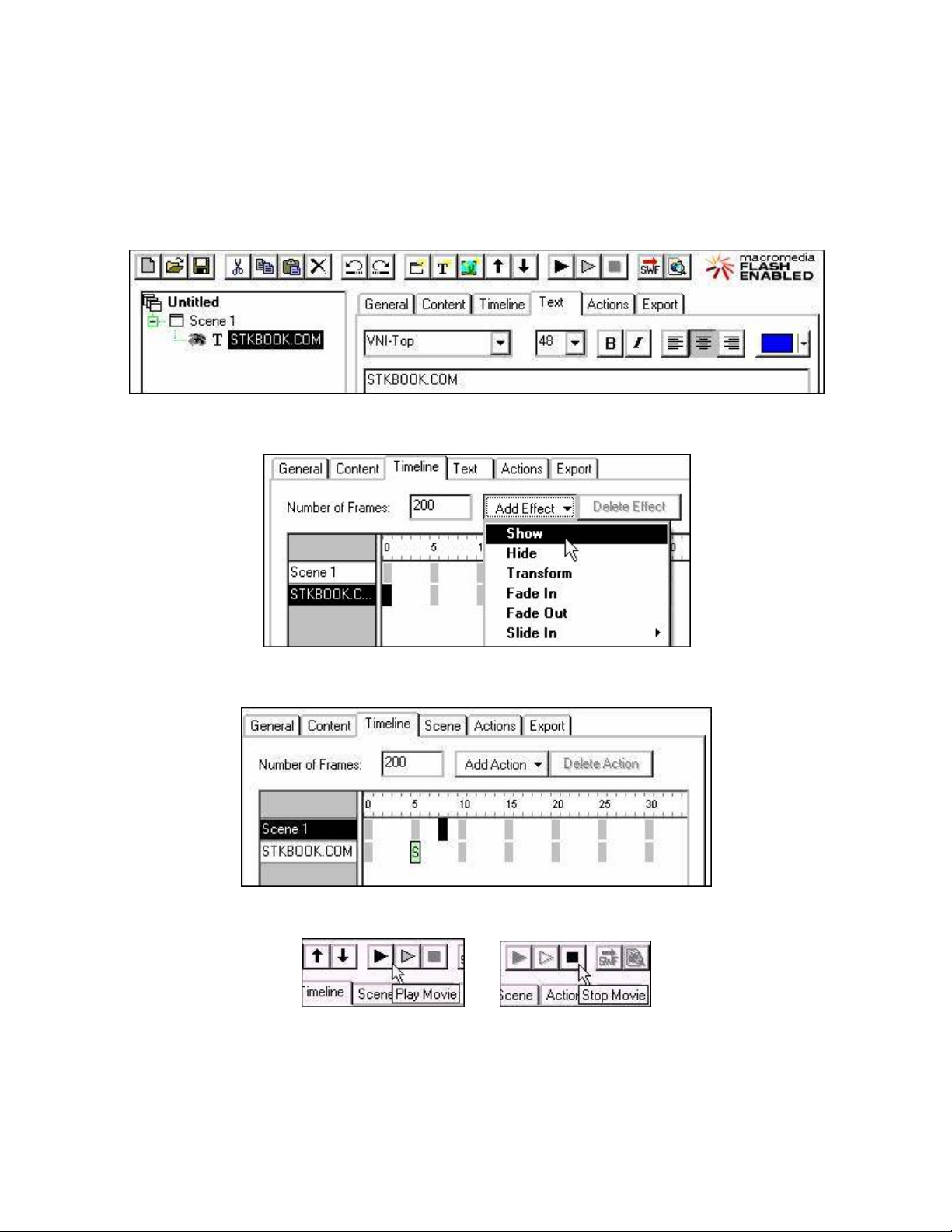 Sau khi thực hiện hiệu ứng Show, trên cửa sổ (khi chọn tab Timeline) hiển thị chữ S trong