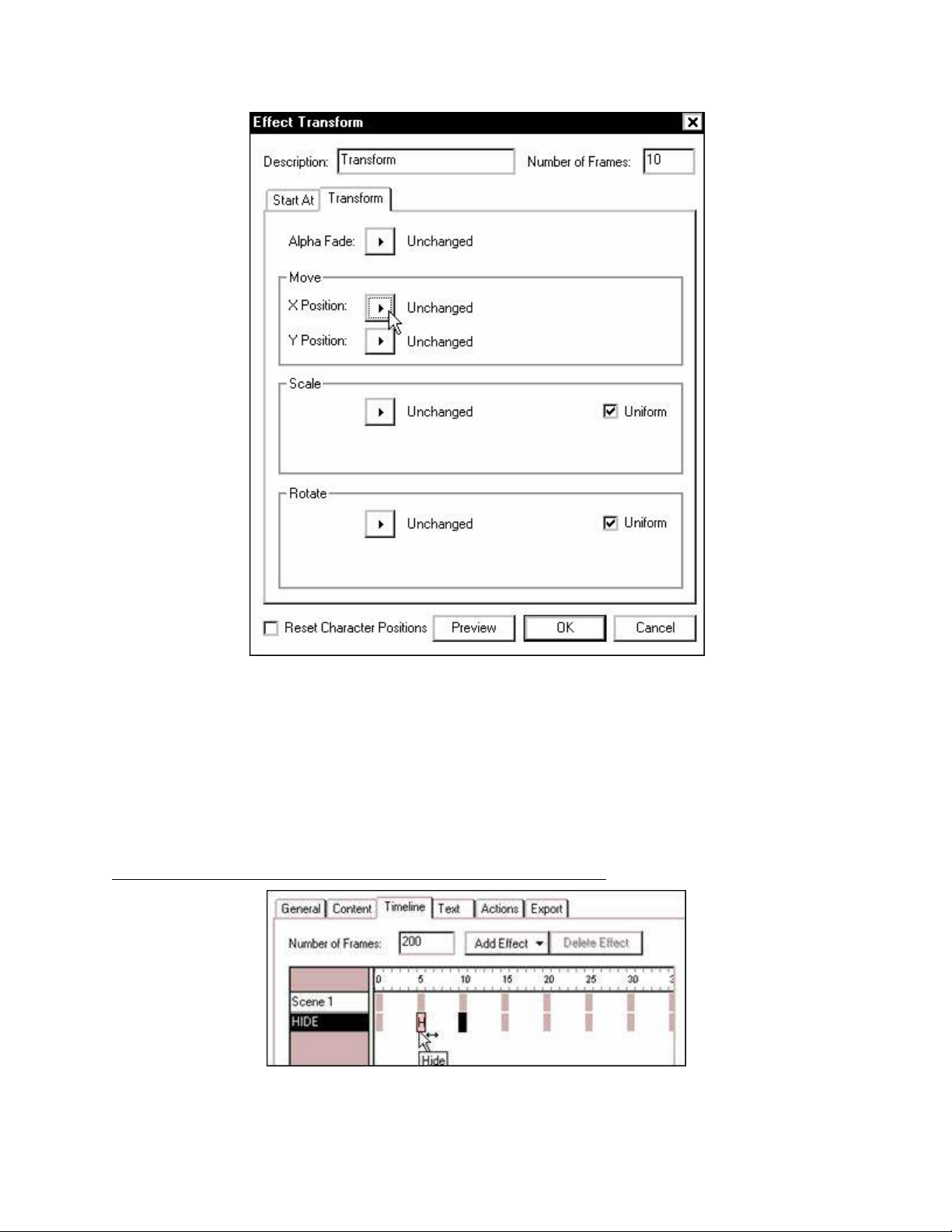 Để tìm hiểu rõ hơn hộp thoại Effect Transform, bạn hãy xem phần hiệu ứng Transform ở