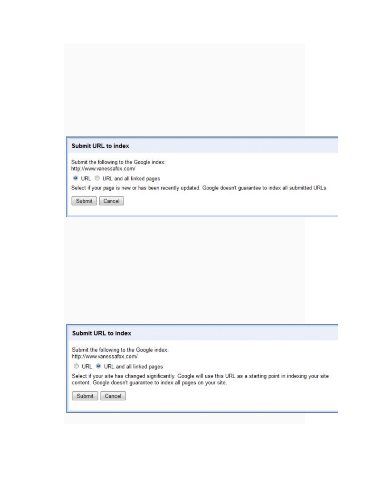 quan trọng. Chức năng submit URL mới này có hai hình thức