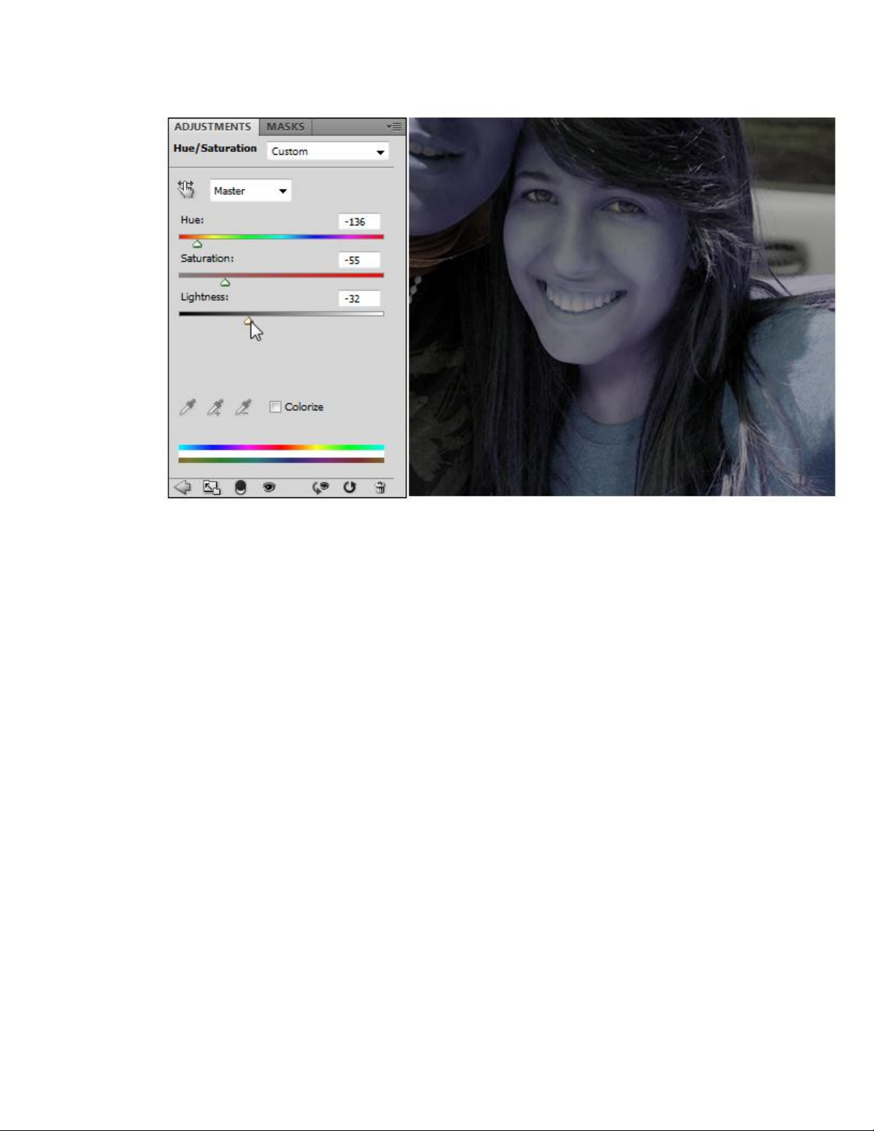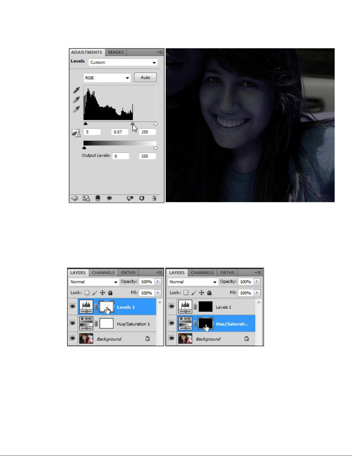 thuật màu sắc của bức ảnh, bao gồmHue/Saturation và Levels. Nhấn