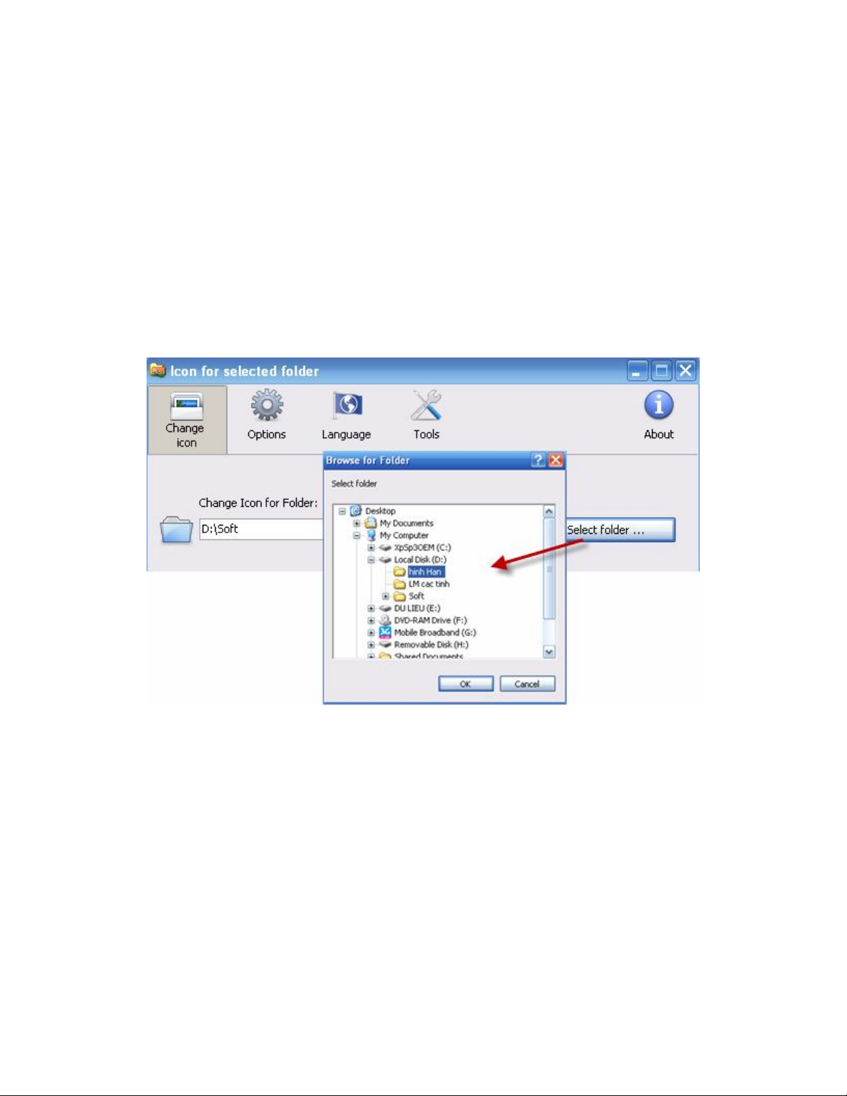 Browse for Folder chọn thư mục cần đổi biểu tượng