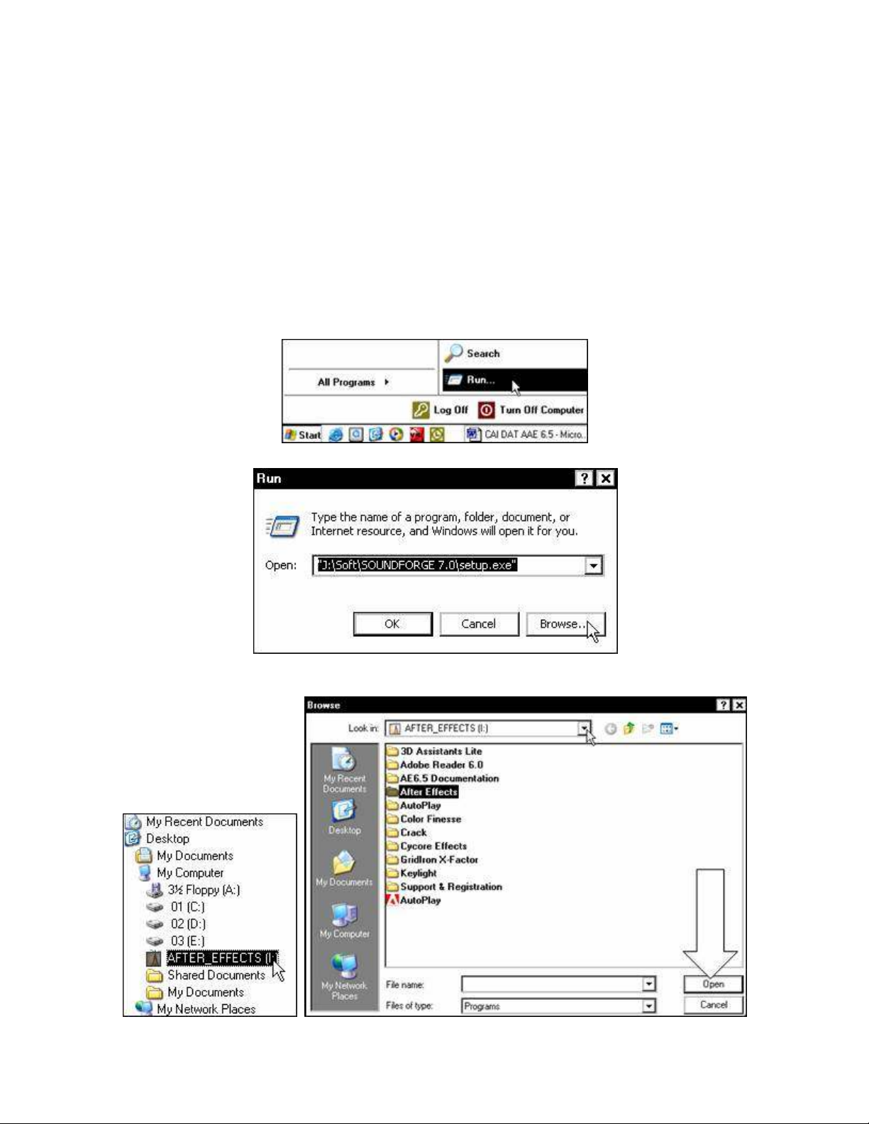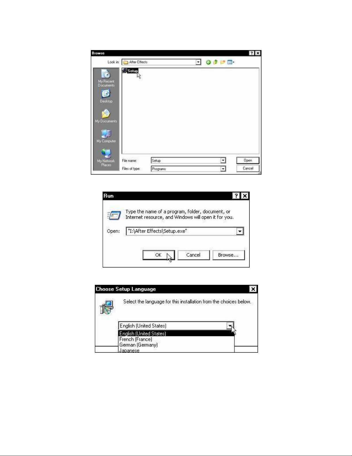 Một cửa sổ mới xuất hiện, chọn ổ đĩa CD – ROM chứa chương trình cài đặt AFTER EFFECTS.