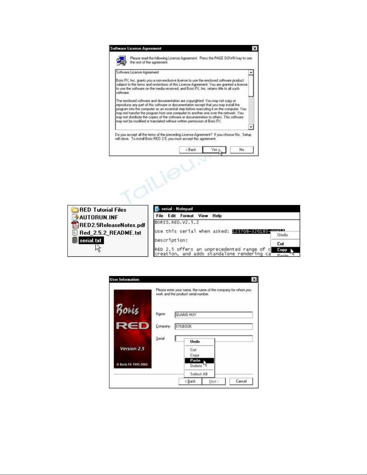 đĩa CD kèm theo. File serial được mở, quét chọn dãy số serial ở mục Use this serial when