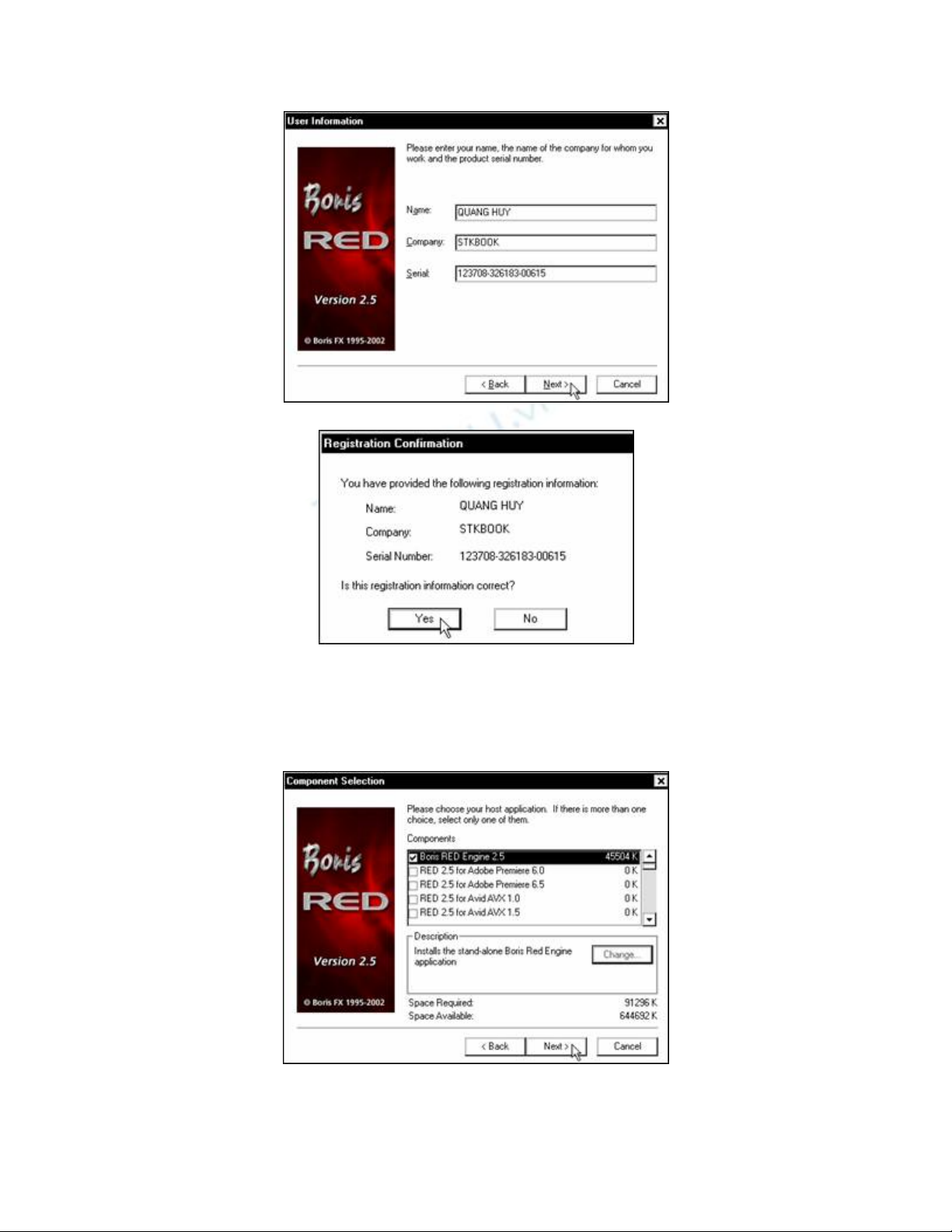 đó có trong hộp thoại Component Selection. Ở đây, để cài đặt Boris RED chạy độc lập, đánh