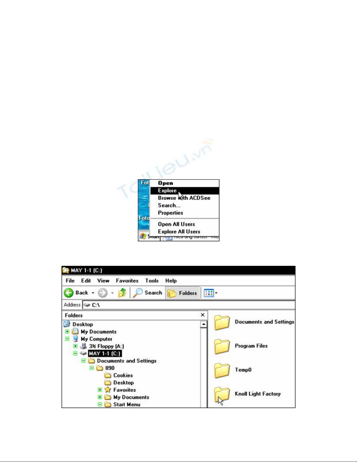 Trong cửa sổ Explore nhấp biểu tượng ổ CD-Rom trên máy, tìm thư mục Knoll Light Factory
