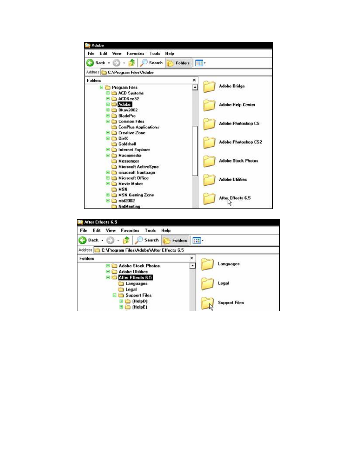 Nhấp đúp thư mục Adobe > Adobe After Effects 6.5.