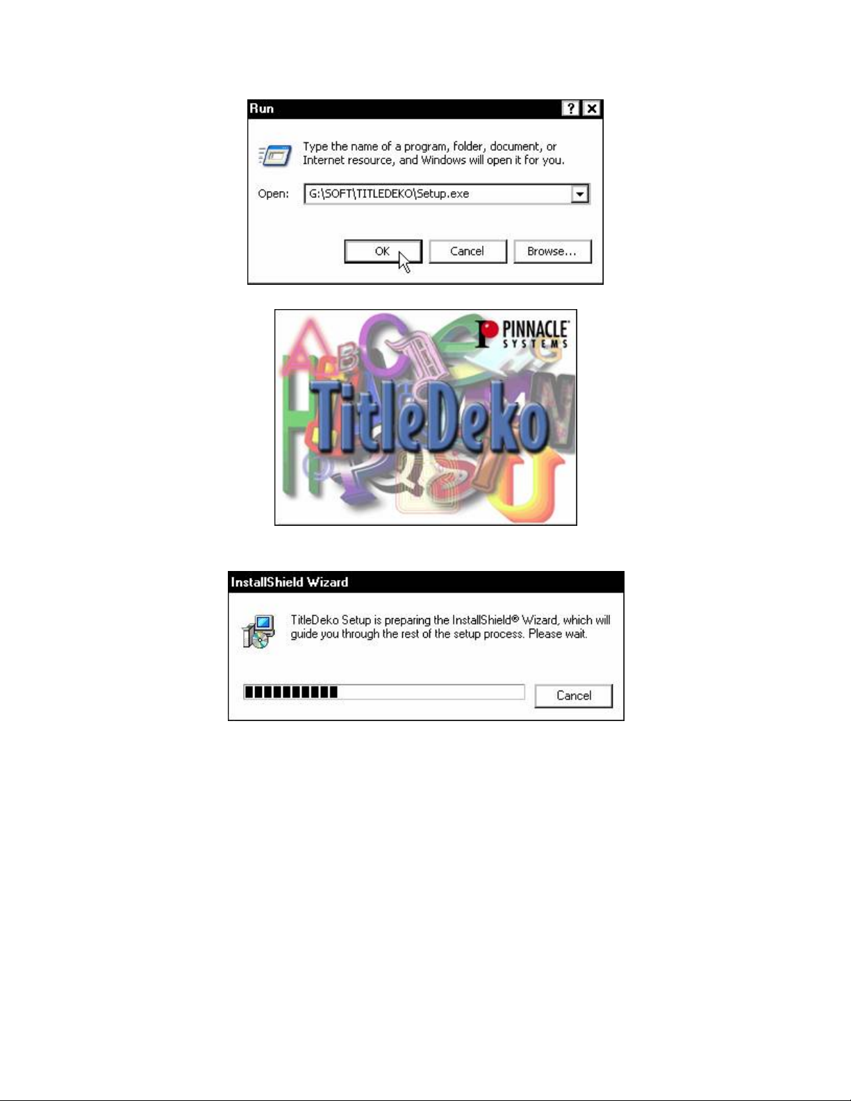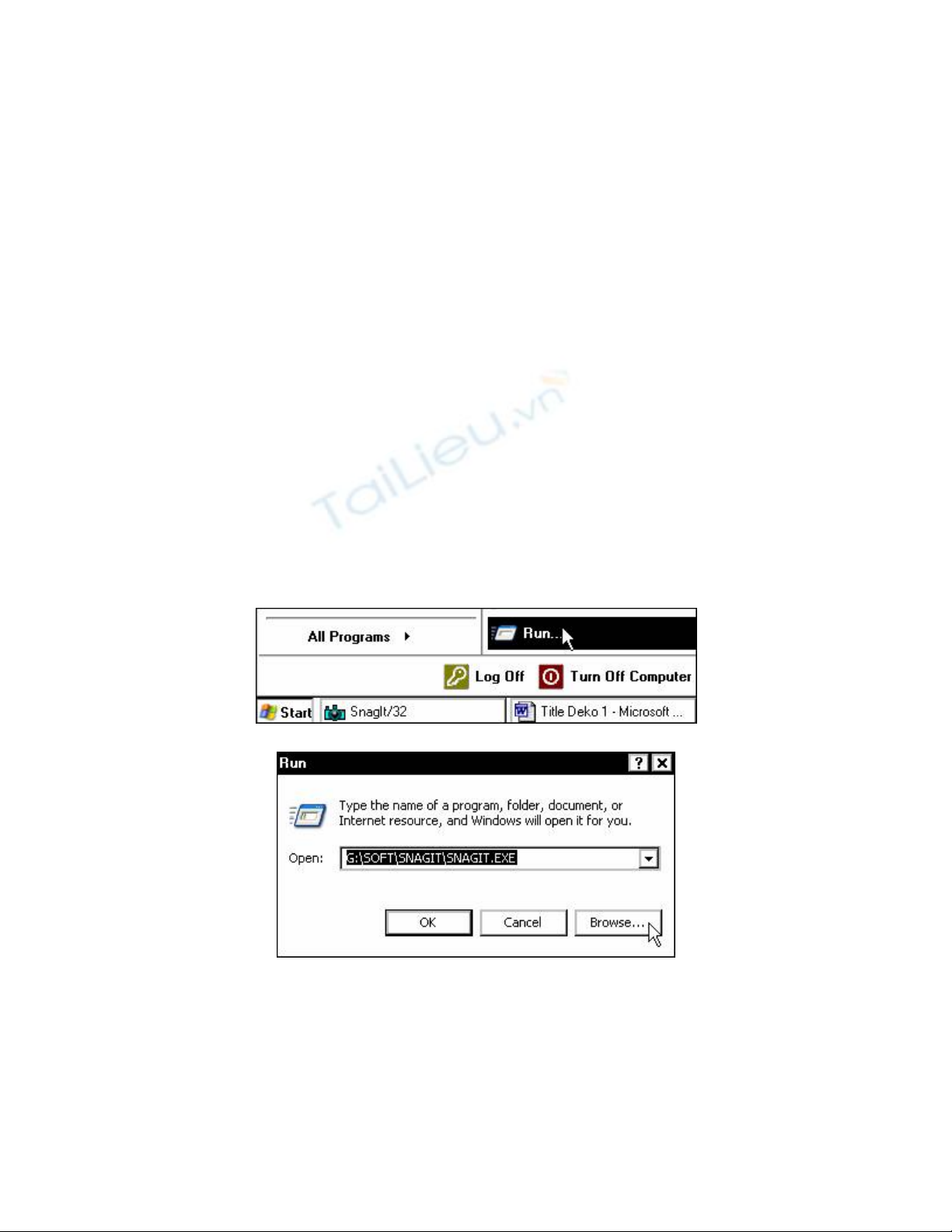 Đưa đĩa cài đặt TITLEDEKO vào trong ổ đĩa CD, chọn Start > All Programs > Run.