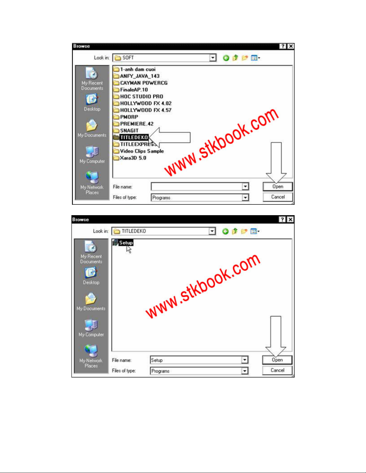 Sau đó, chọn Setup trong thư mục TITLEDEKO và nhấp chọn Open.
