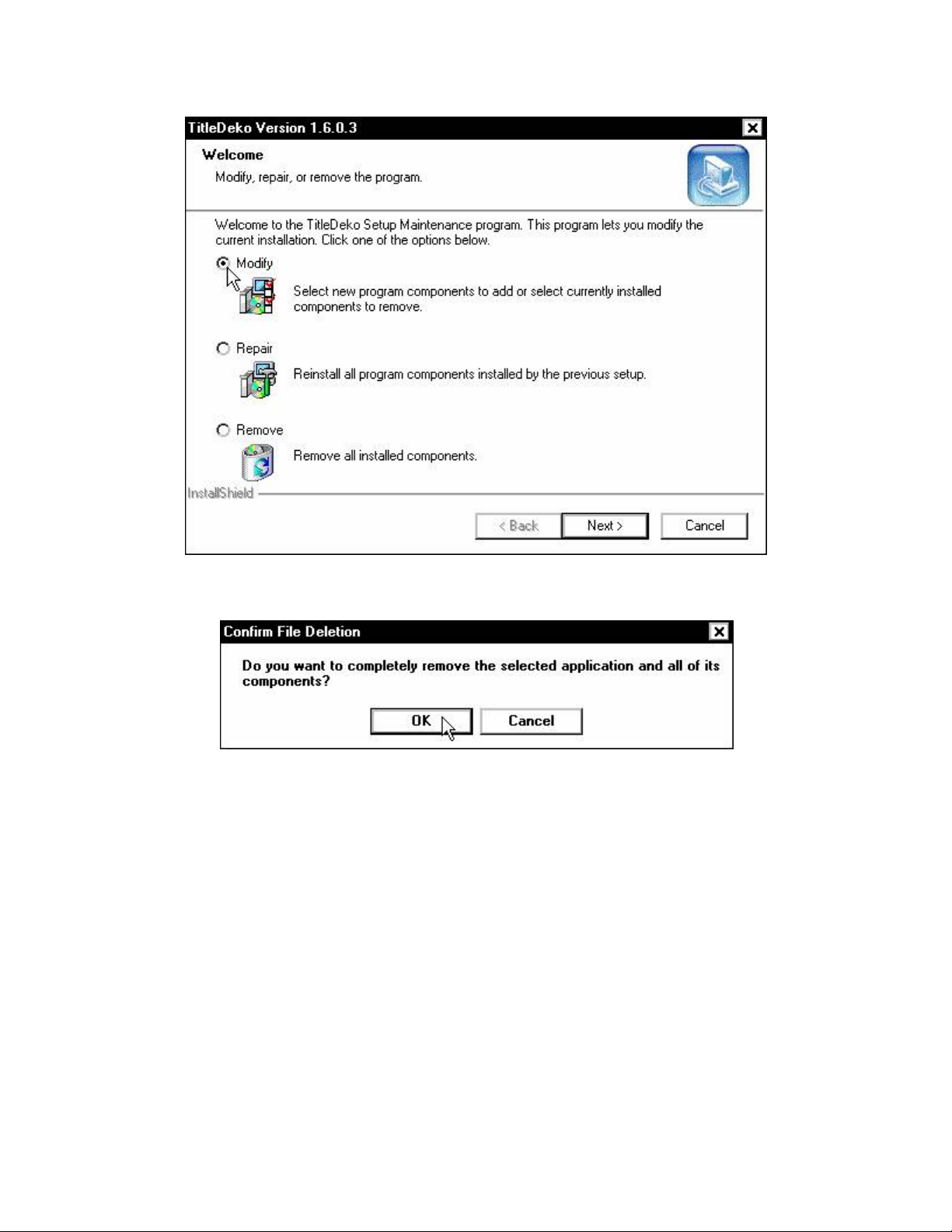 Nếu máy chưa cài chương trình, cửa sổ Welcome to the InstallShield Wizard for TitleDeko