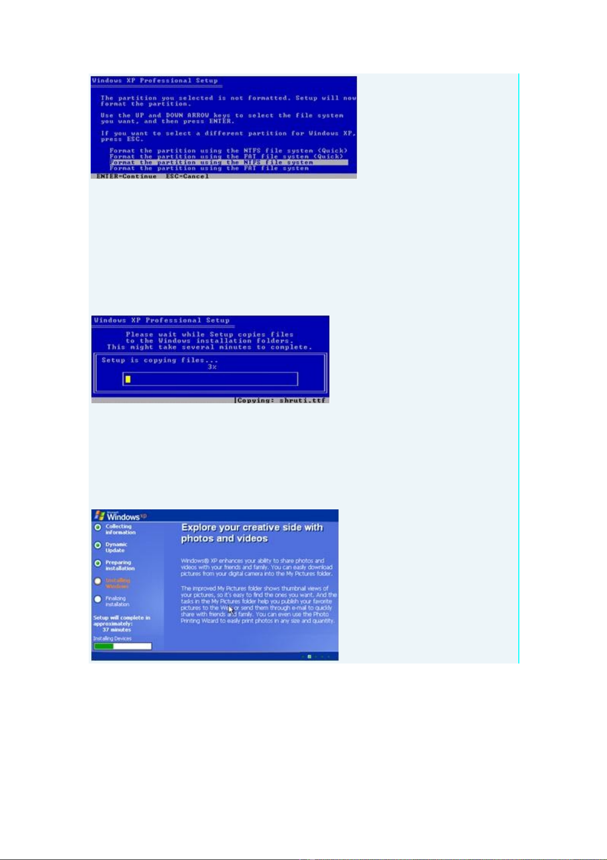 - Setup sao chép các file cần thiết của WinXP từ CD vào ổ cứng. Sau khi sao chép xong,