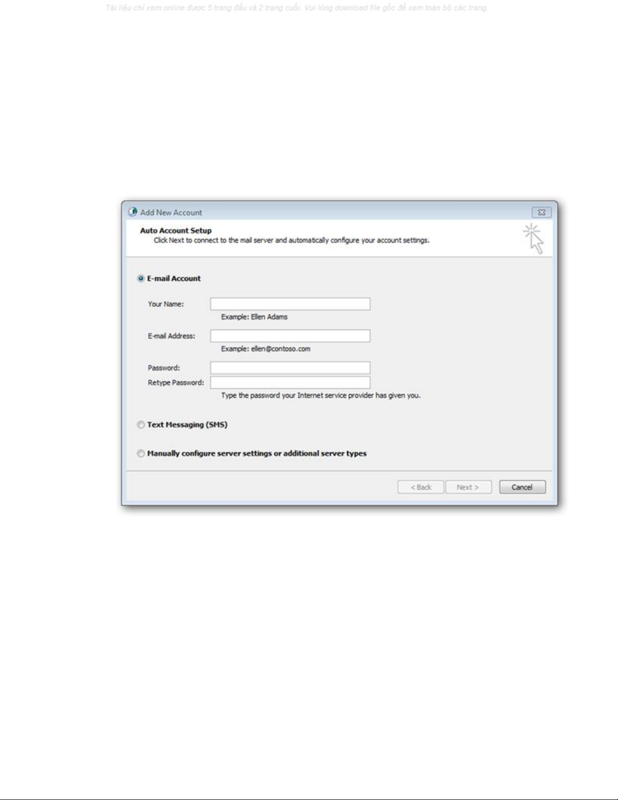 Quá trình thiết lập này sẽ bắt đầu bằng việc tạo Mail Profile để lưu trữ