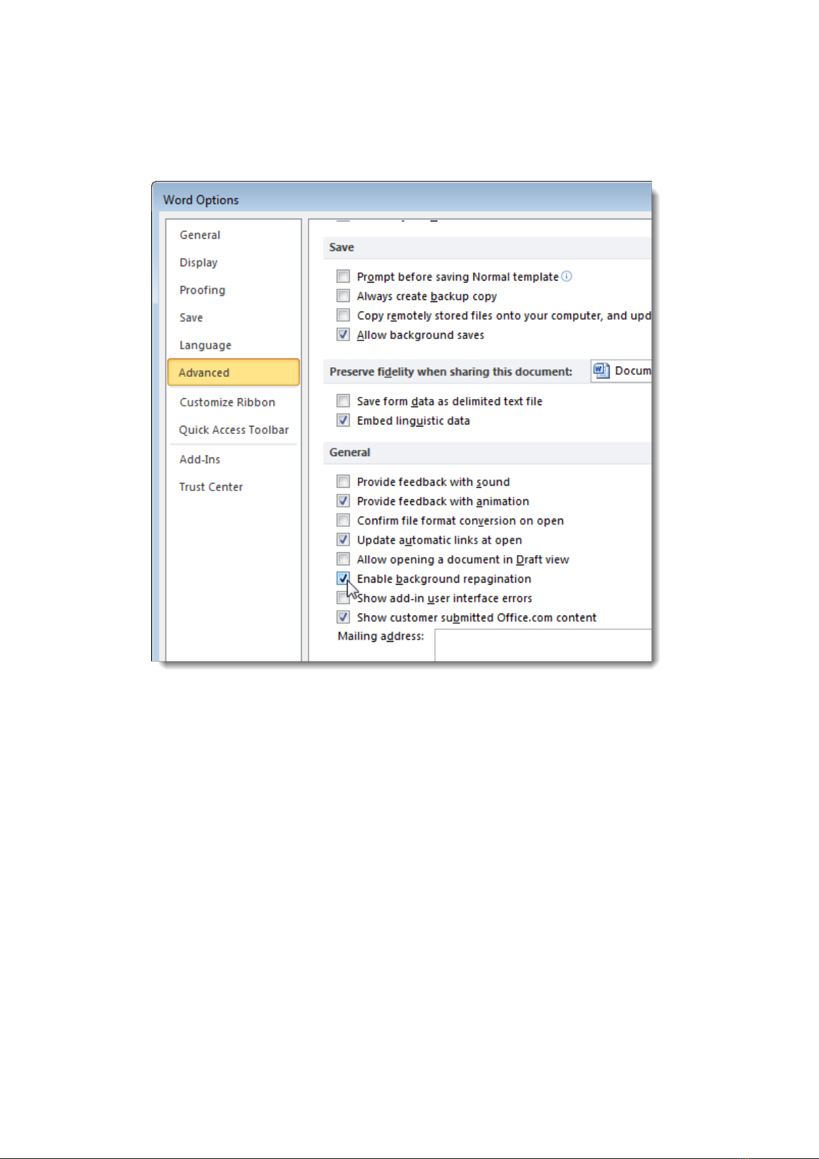 Để có thể tắt Background Repagination trong Word 2007, đầu tiên bạn hãy chắc chắn rằng Word
