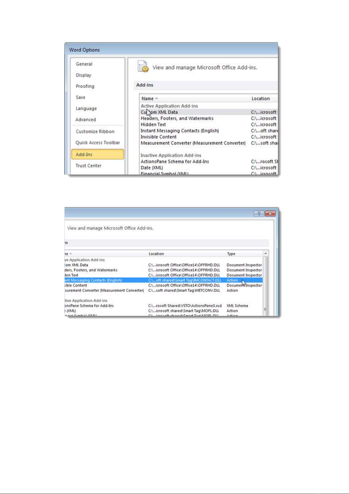 Bạn hãy chọn những add–in tương ứng cần tắt ở cột Type.