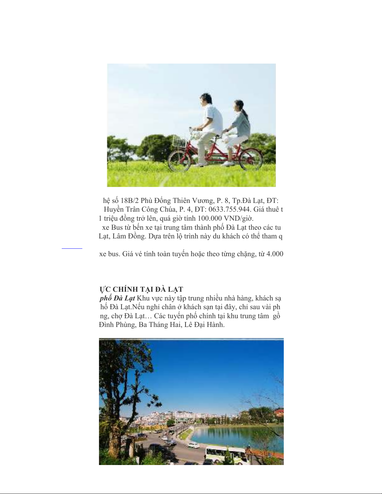 bên cạnh khu vui chơi giải trí Đà Lạt; các địa điểm quanh Bờ Hồ Xuân Hương. Giá thuê xe đạp