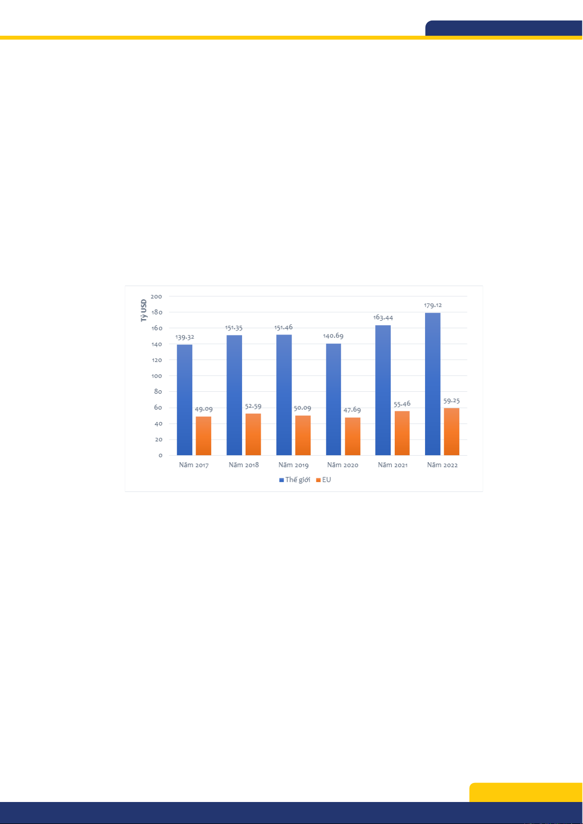 Biểu đồ 1. Trị giá nhập khẩu thủy sản của thế giới và EU trong giai đoạn năm