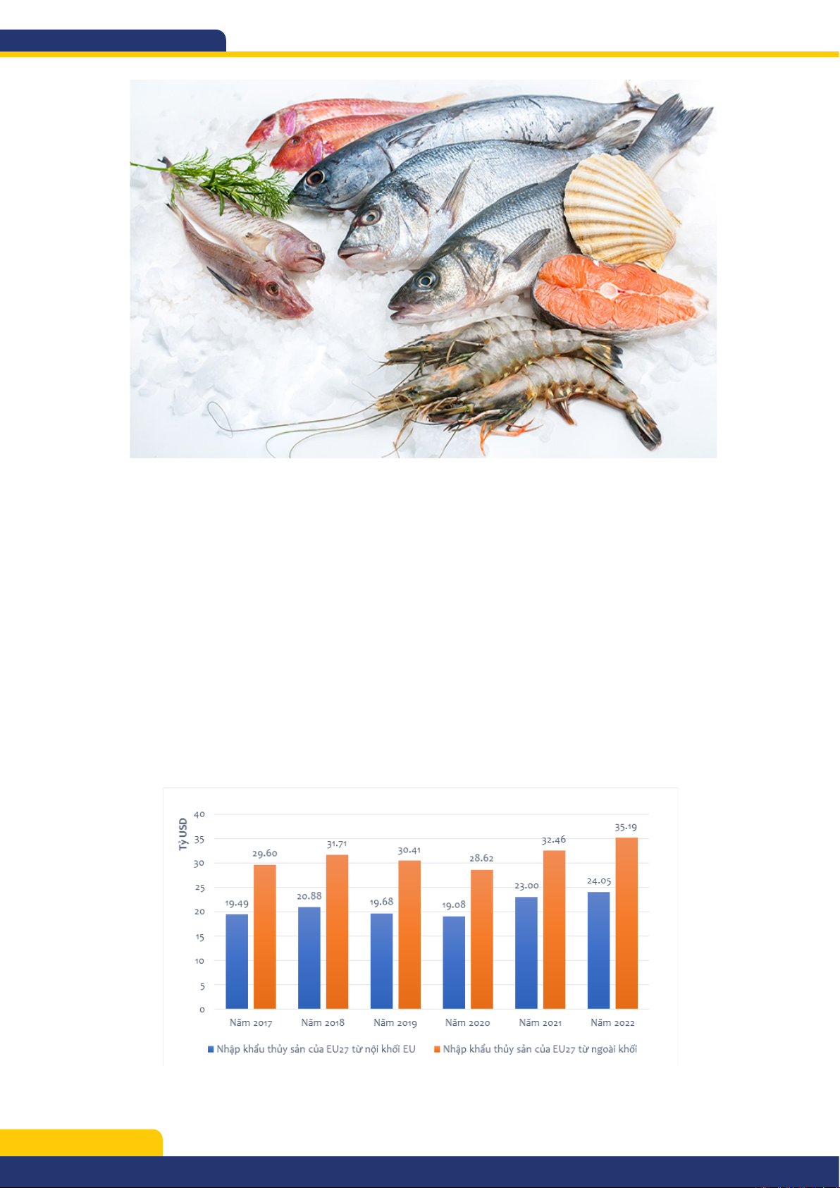 Trong đó, EU-27 là thị trường nhập khẩu thủy sản lớn nhất, chiếm 33,08% tổng trị