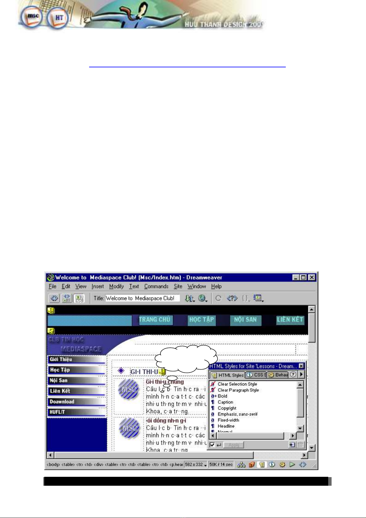 Dreamweaver coøn hoå trôï caùc HTML Styles vaø Cascading Style Sheet giuùp baïn ñònh