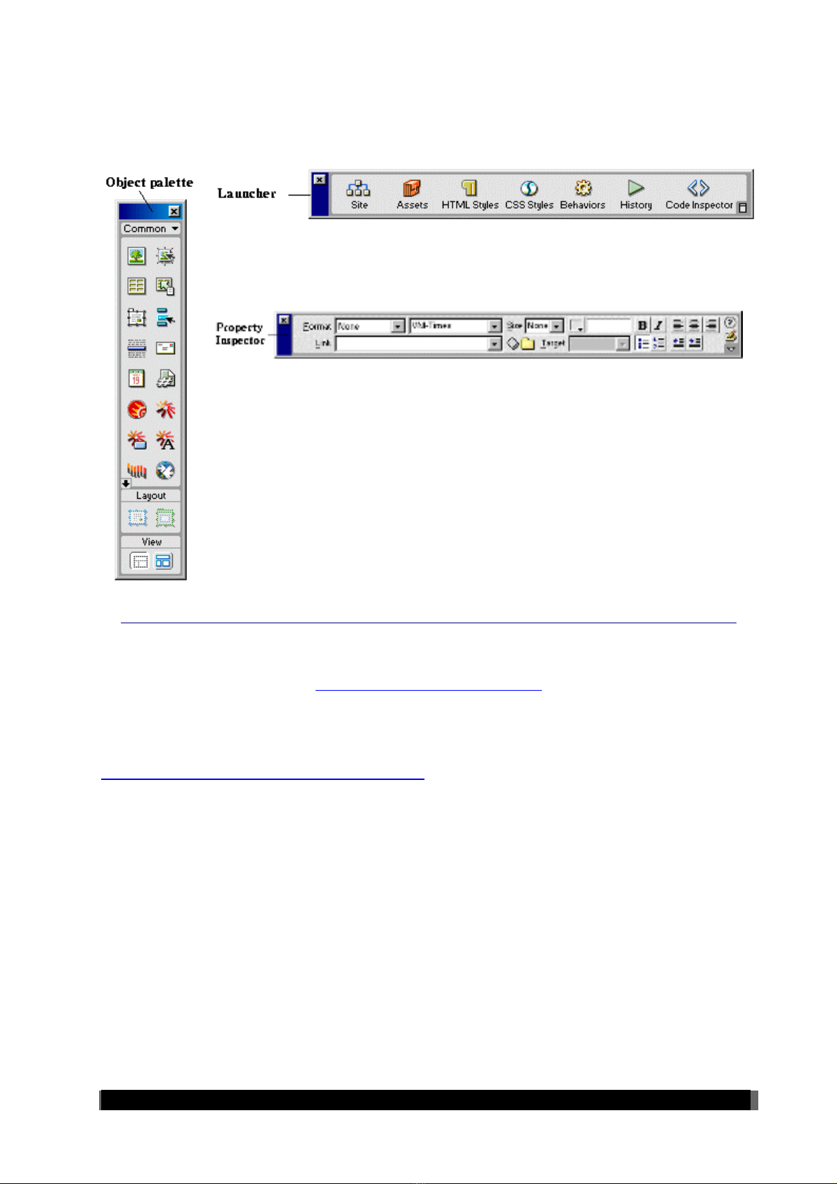 thaønh phaàn nhö sau: Document, Launcher, Object Palette, Property Inspector, Floating
