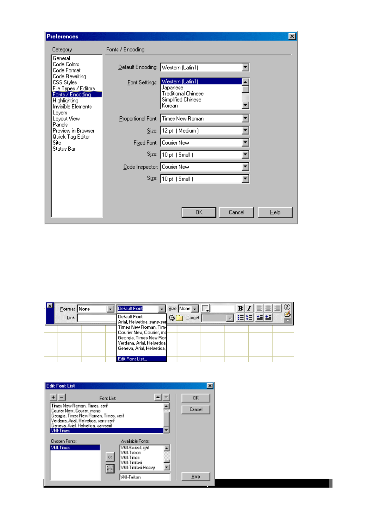 cho caùc trang taøi lieäu môùi vaø caøi ñaët caùc font maø Dreamweaver duøng ñeå hieån thò moãi moät