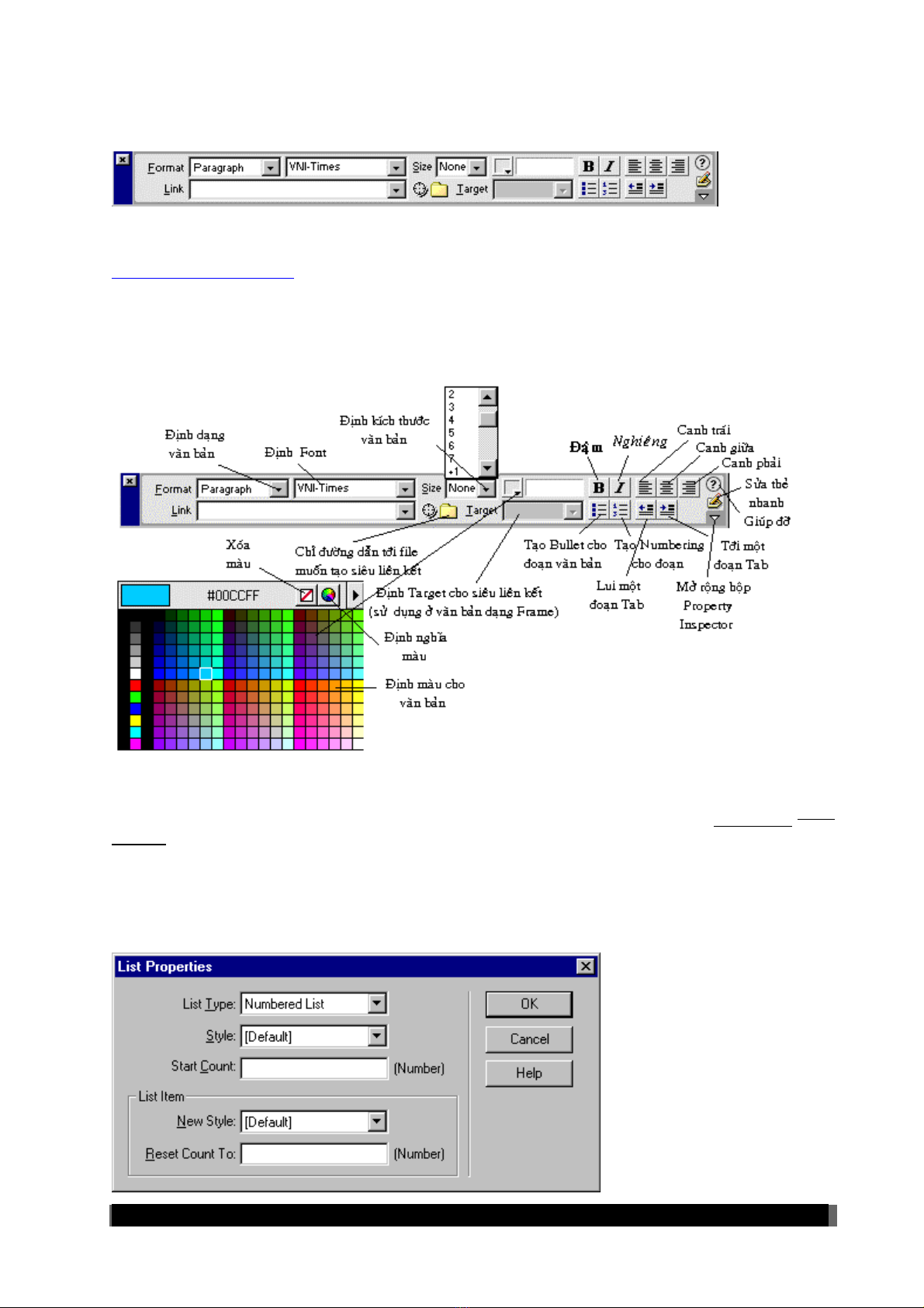 Löu yù:Trong luùc ñònh daïng vaên baûn baïn coù theå söû duïng hoäp Property Inspector hoaëc baïn