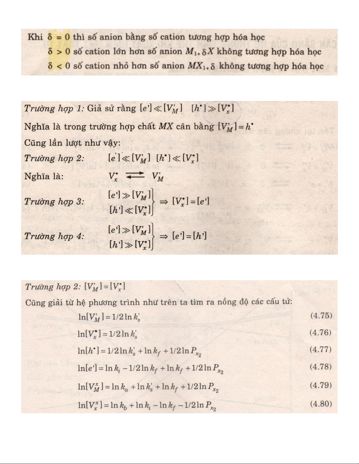 Từ phương trình cân bằng điện tích, ta có 4 trường hợp: