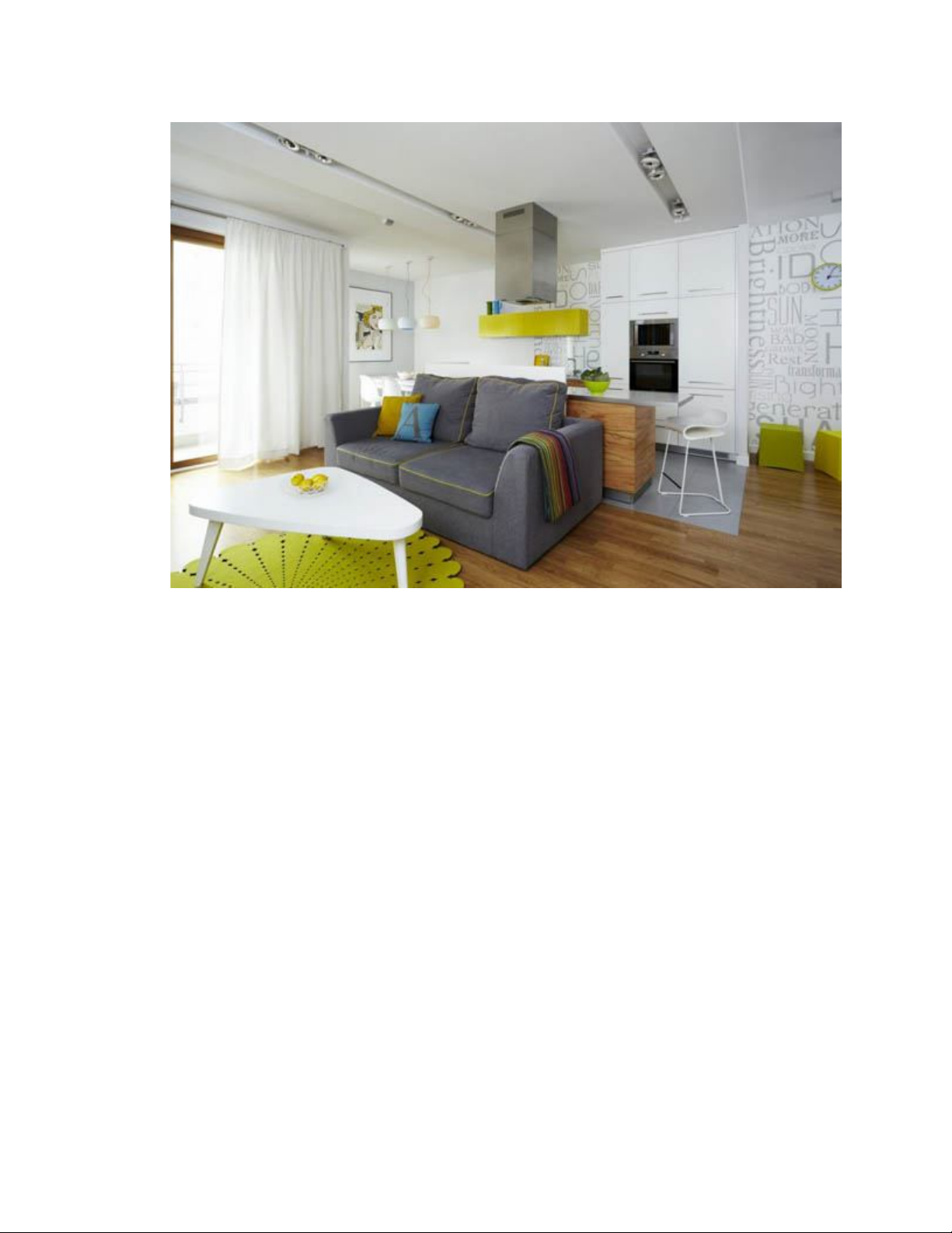 Các mảng màu được sử dụng rộng rãi trong căn hộ nhất là