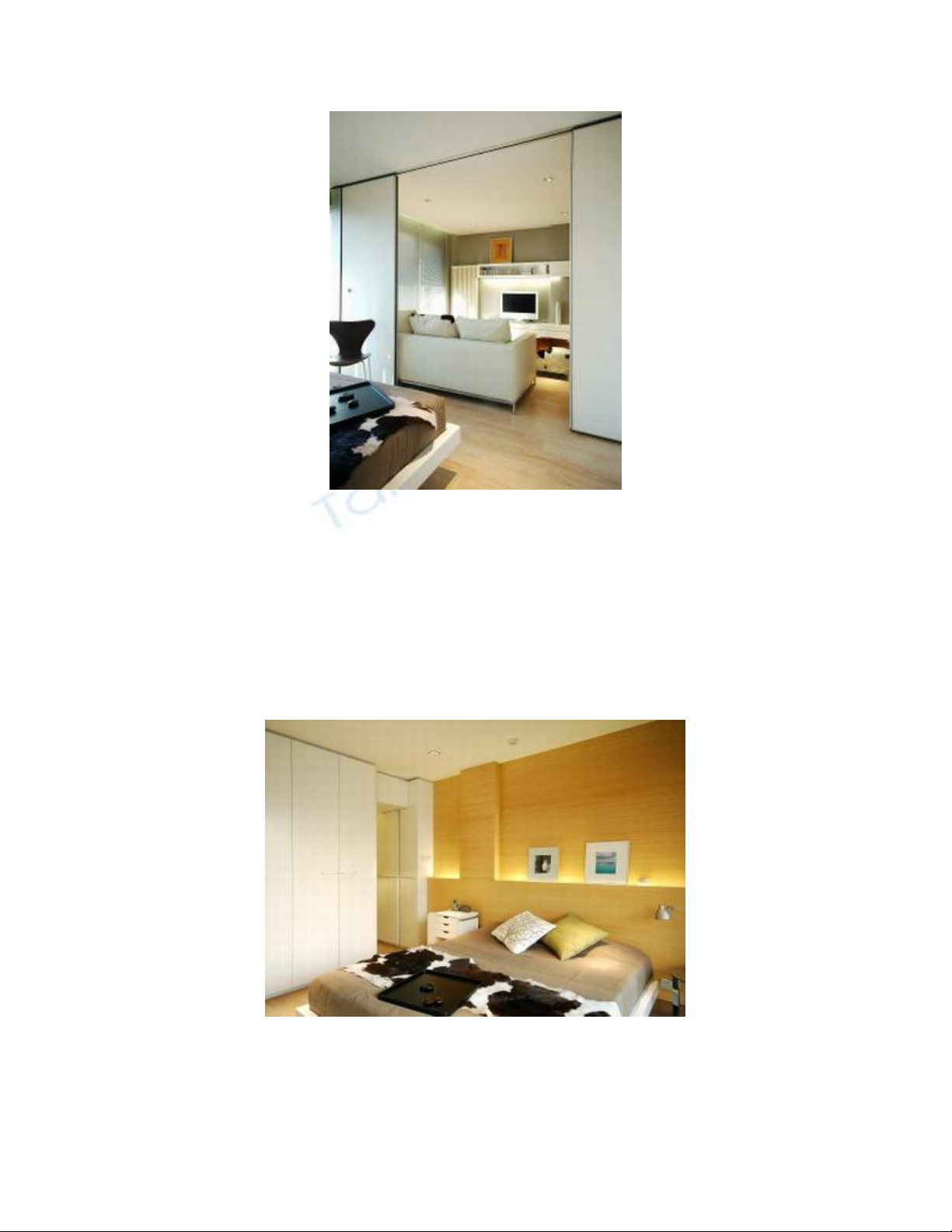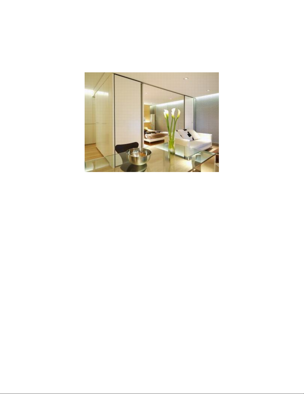 Vách ngăn, với 4 tấm cơ động, có thể mở rộng để kết nối không gian ngủ và sinh