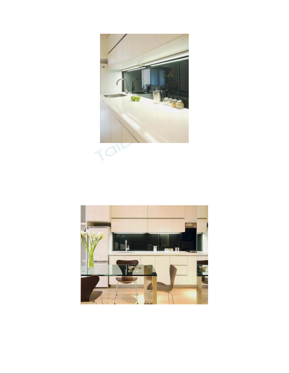 Bóng của tủ bếp qua tấm kính đen tạo căn bếp rộng và có chiều sâu hơn.