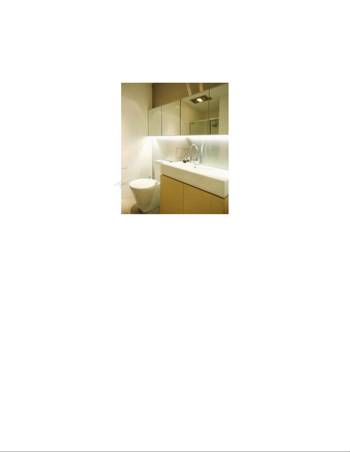 Tủ gương và tấm ốp inox làm tăng sự tươi sáng và nét hiện đại của căn hộ