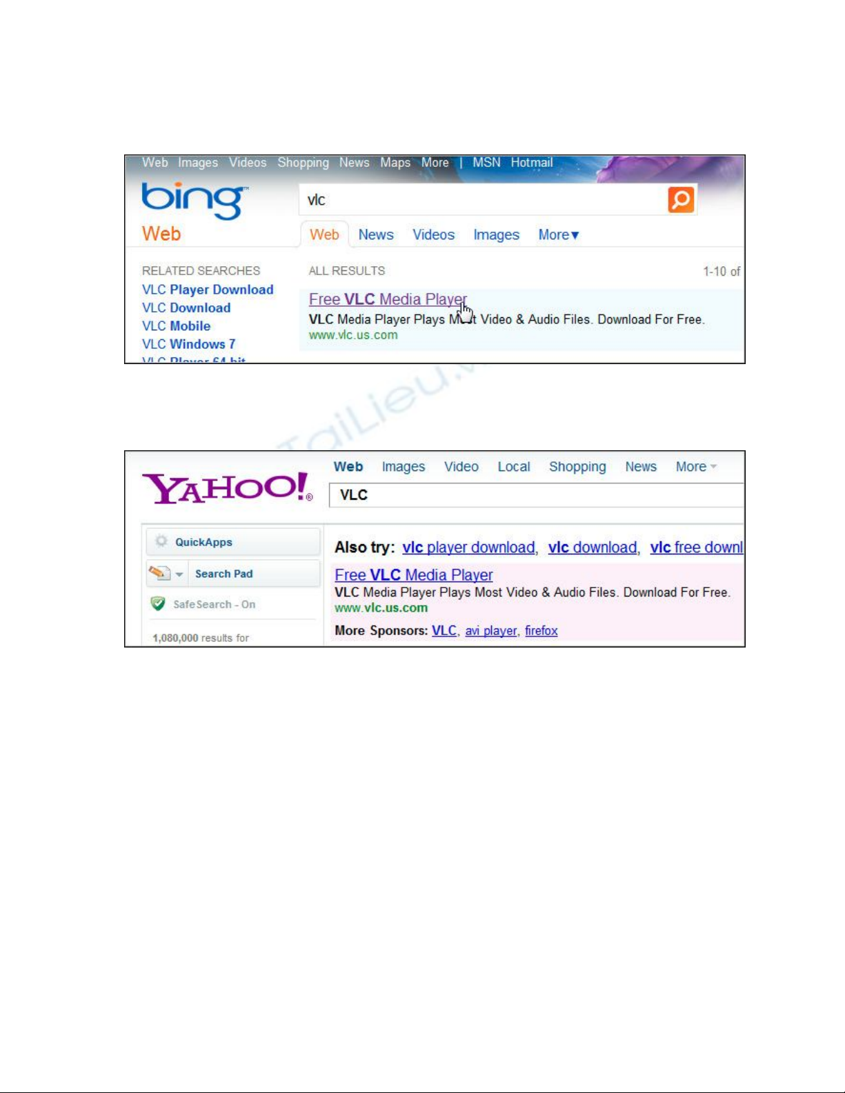 Nếu sử dụng Google hoặc Bing để tìm kiếm, thì kết quả hiển thị đầu