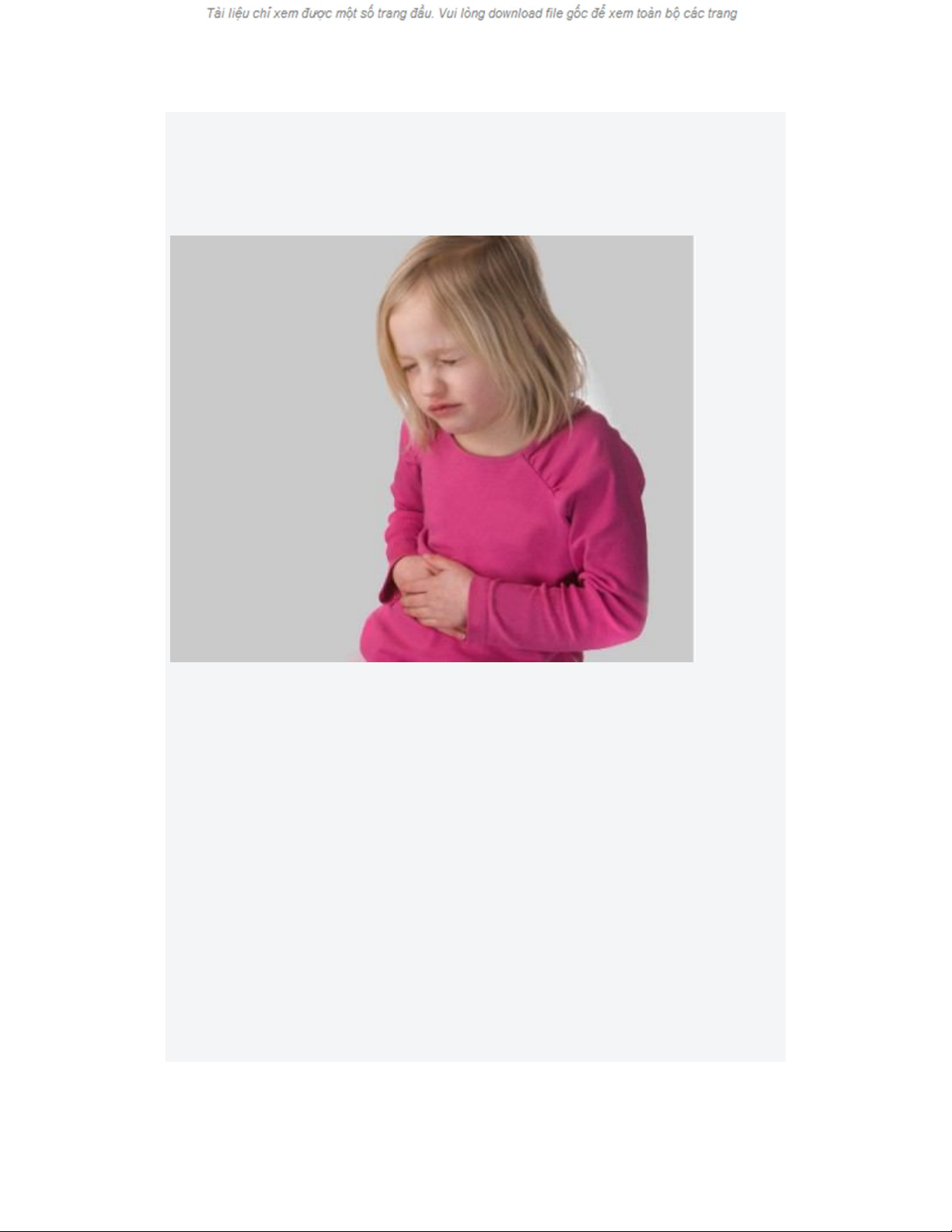 Đau bụng là dấu hiệu đầu tiên. Nếu hỏi đau ở đâu, trẻ thường