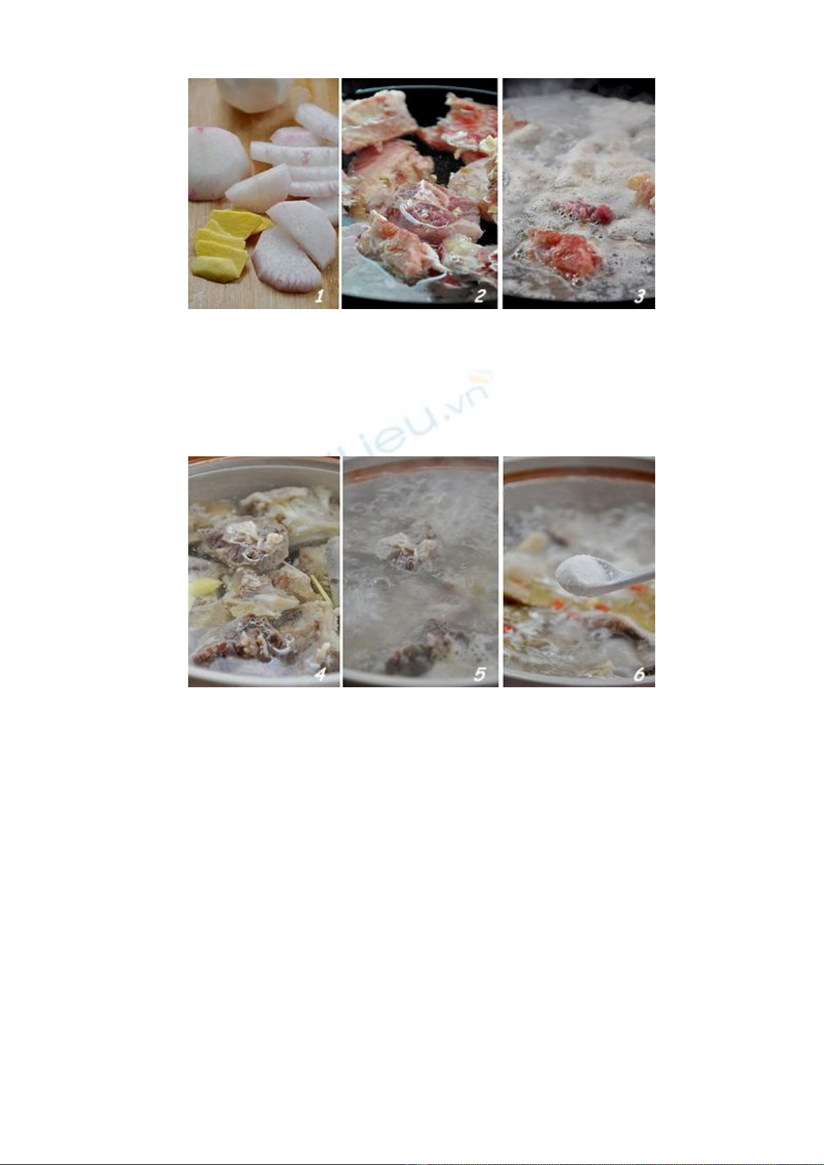 Củ cải cạo vỏ, thái miếng. Gừng rửa sạch thái lát.