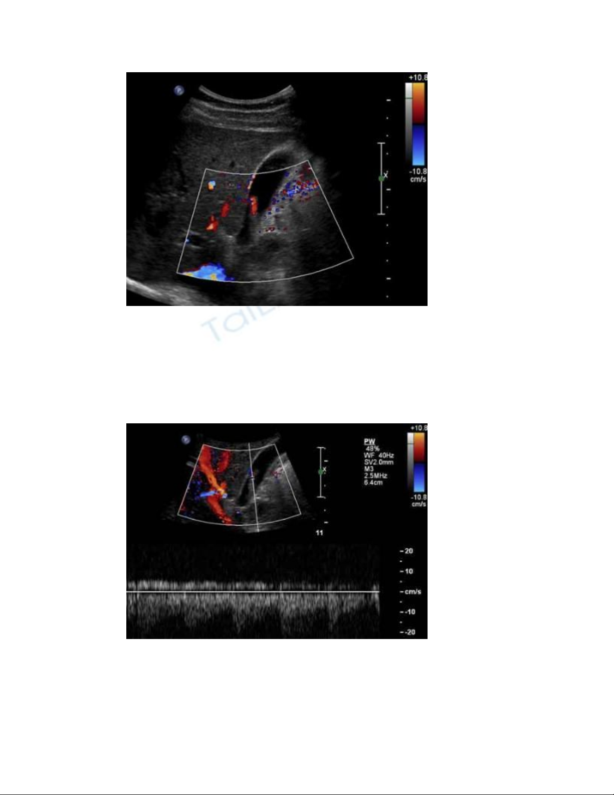 Hình cắt dọc túi mật với Doppler xung
