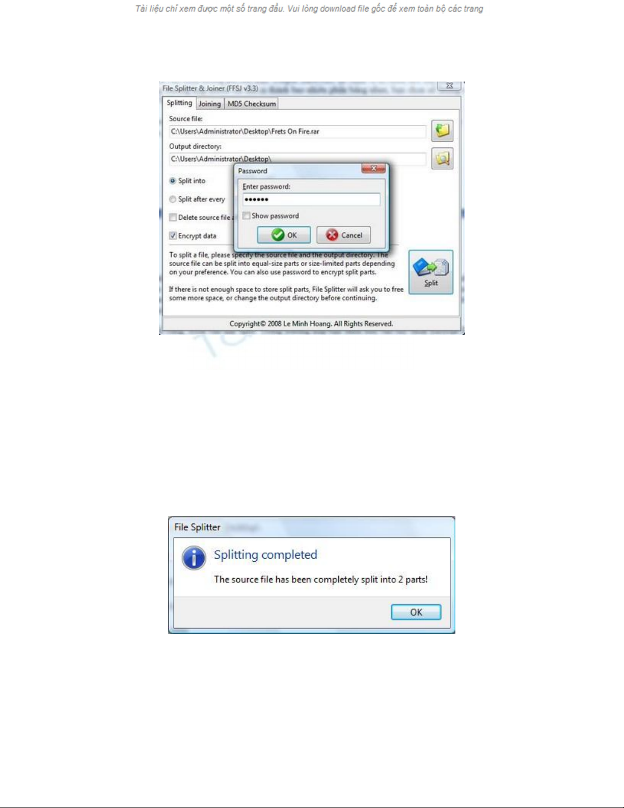 Encrypt Data để đặt mật khẩu cho các file chia nhỏ.
