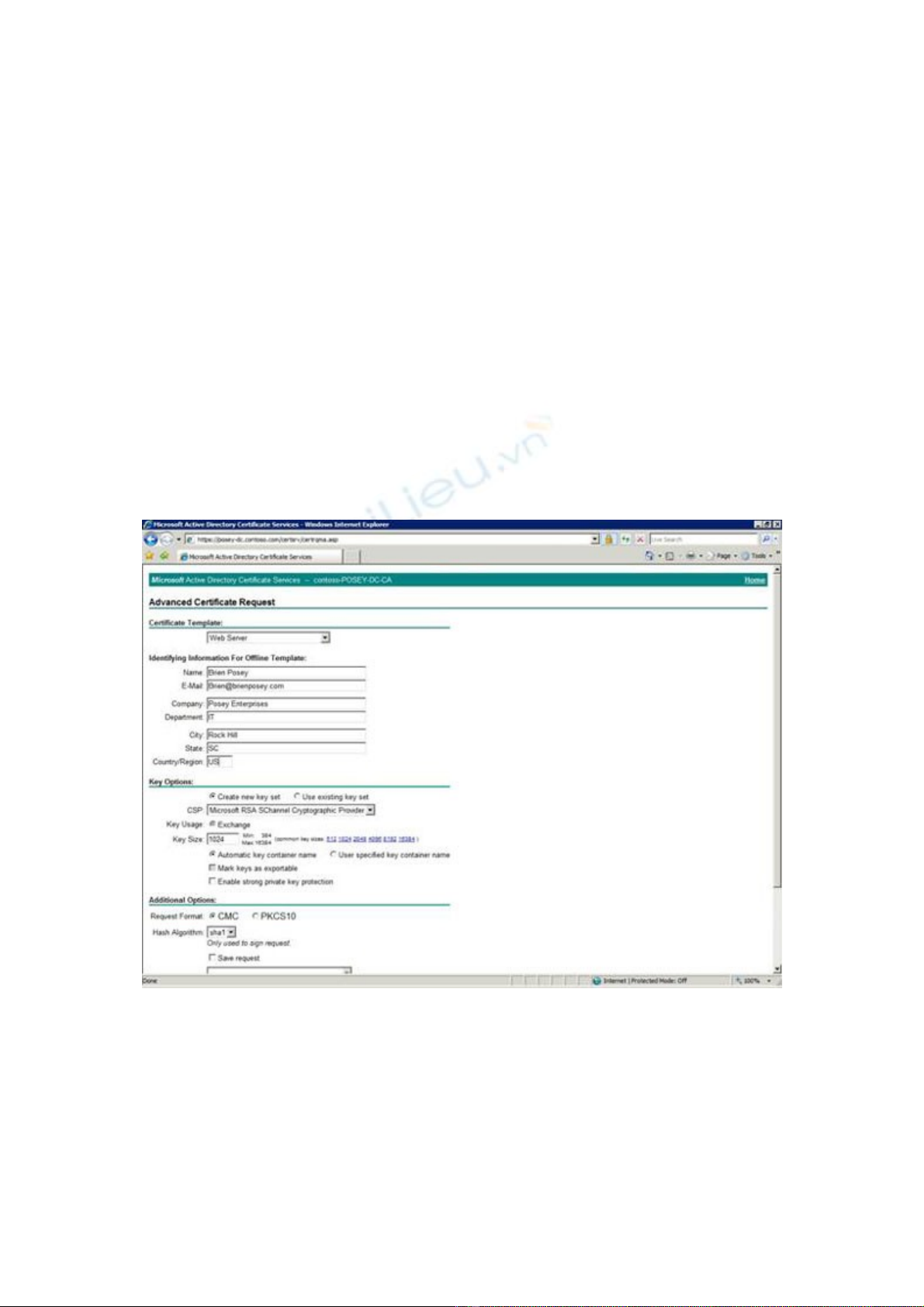 Ti p đó b n s đ c đ a đ n màn hình chính ế ạ ẽ ượ ư ế Advanced Certificate Request.