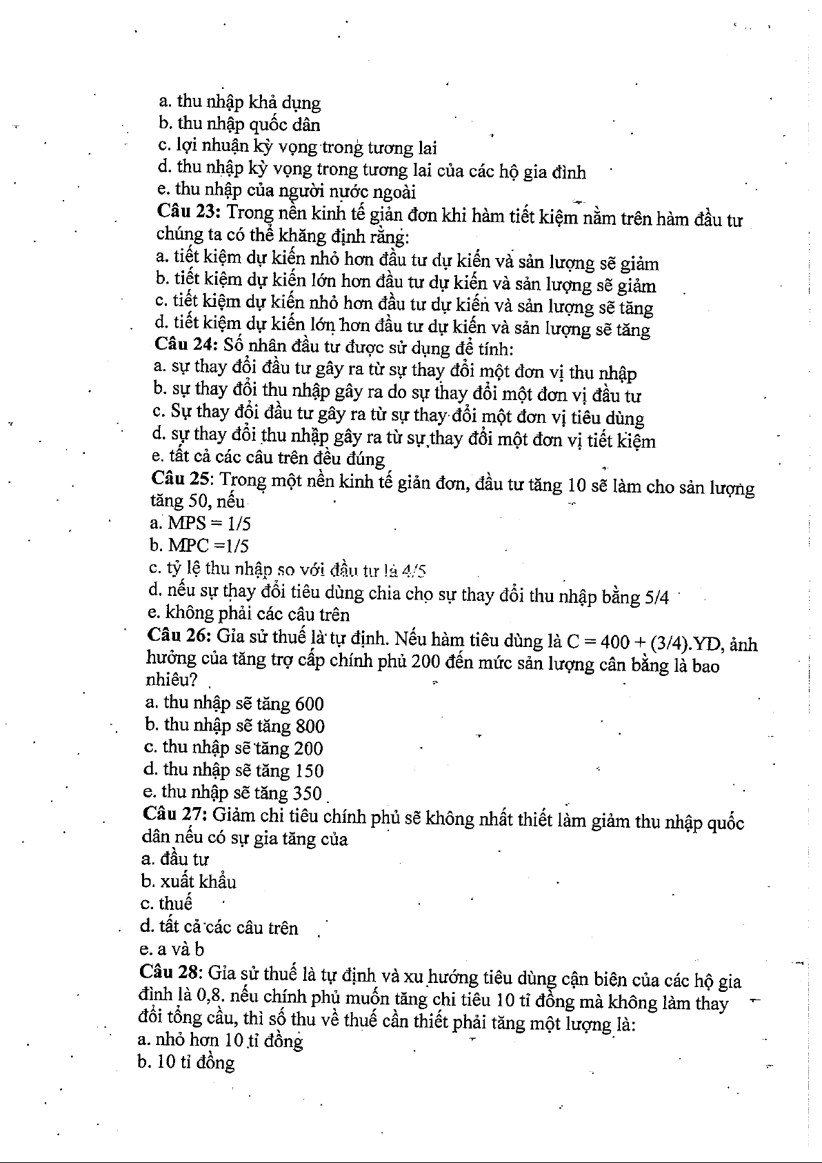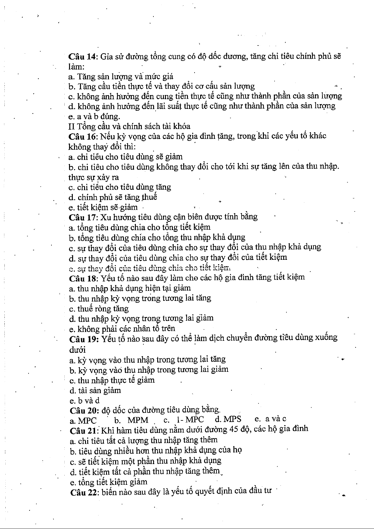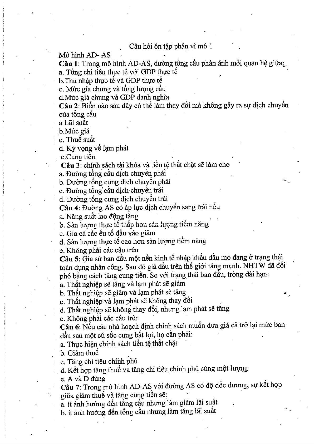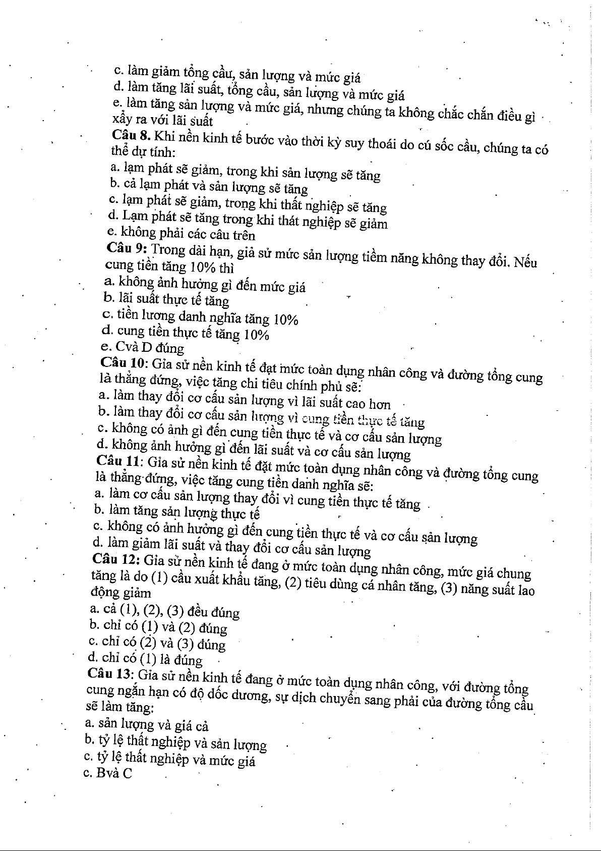 Câu hỏi kinh tế vĩ mô