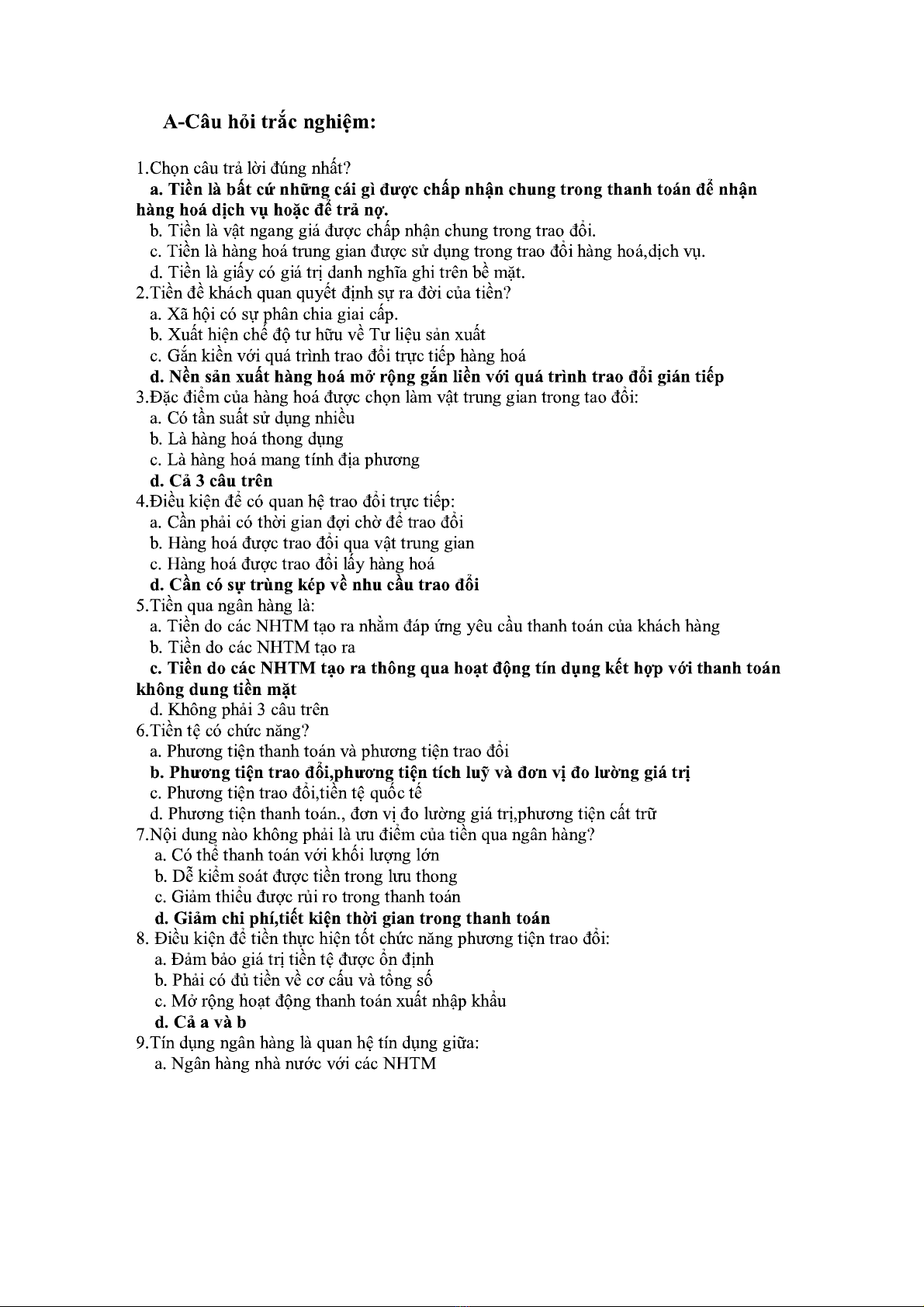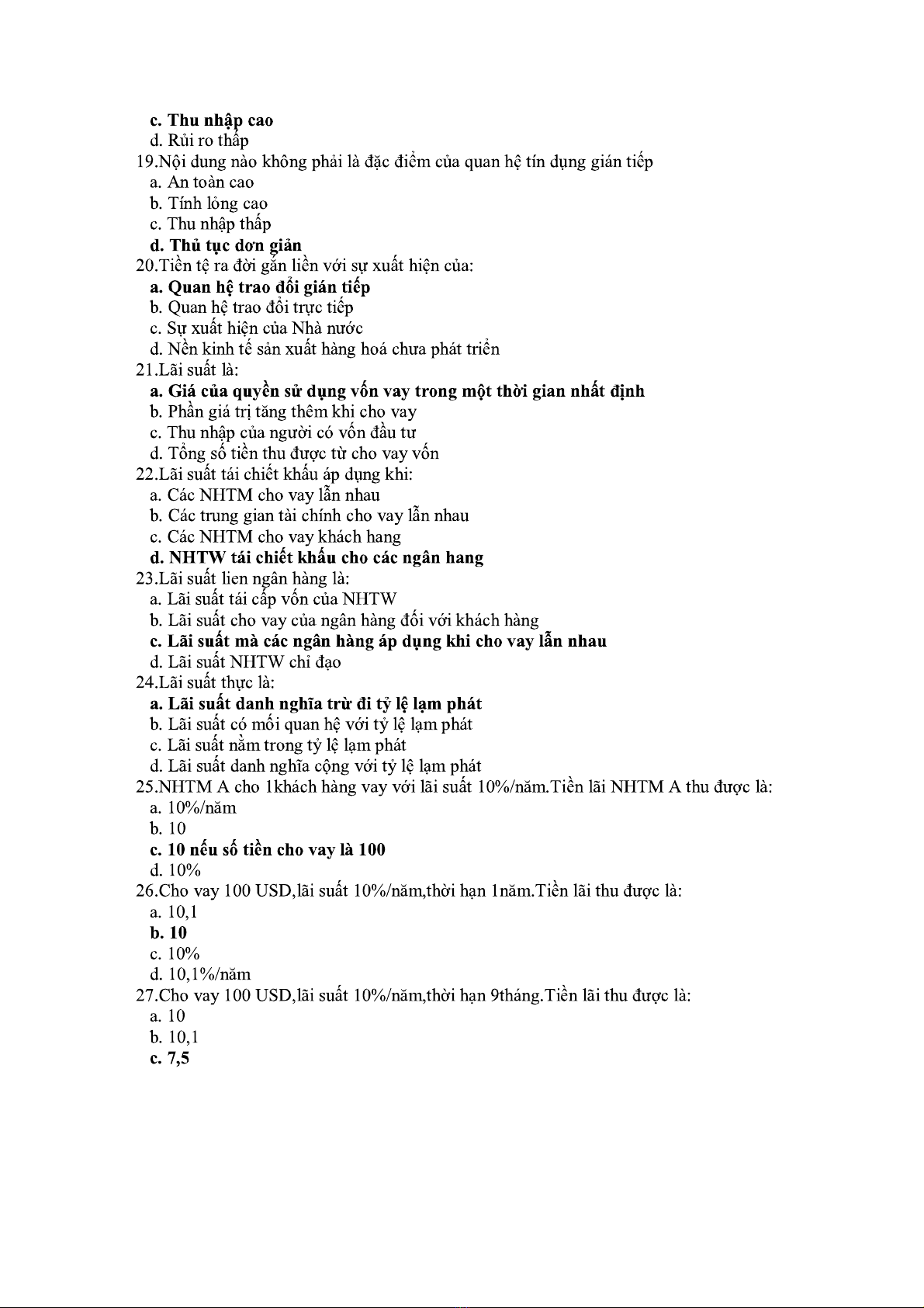 Câu hỏi môn Lý thuyết tiền tệ gồm những câu hỏi trắc nghiệm có đáp án giúp ôn tập và hệ thống lại kiến thức môn học Lý thuyết tiền tệ để có thể học tập và nghiên cứu môn học một cách hiệu quả.