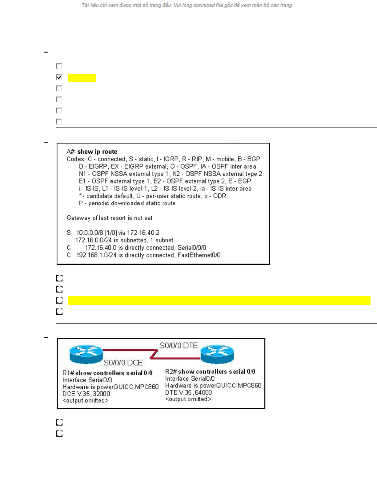 A(config)# ip route 10.0.0.0 255.0.0.0 172.16.40.2