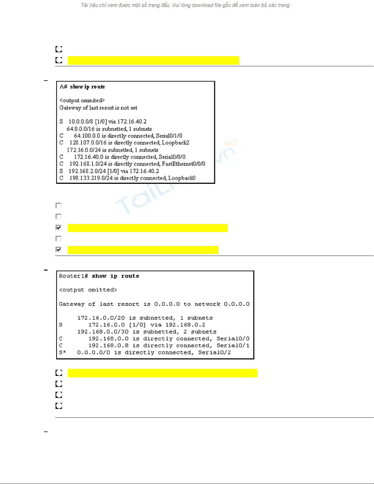 A(config)# no ip route 10.0.0.0 255.0.0.0 172.16.40.2
