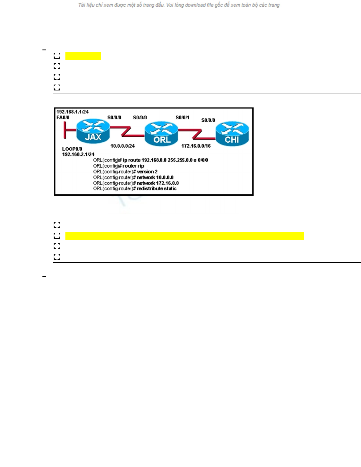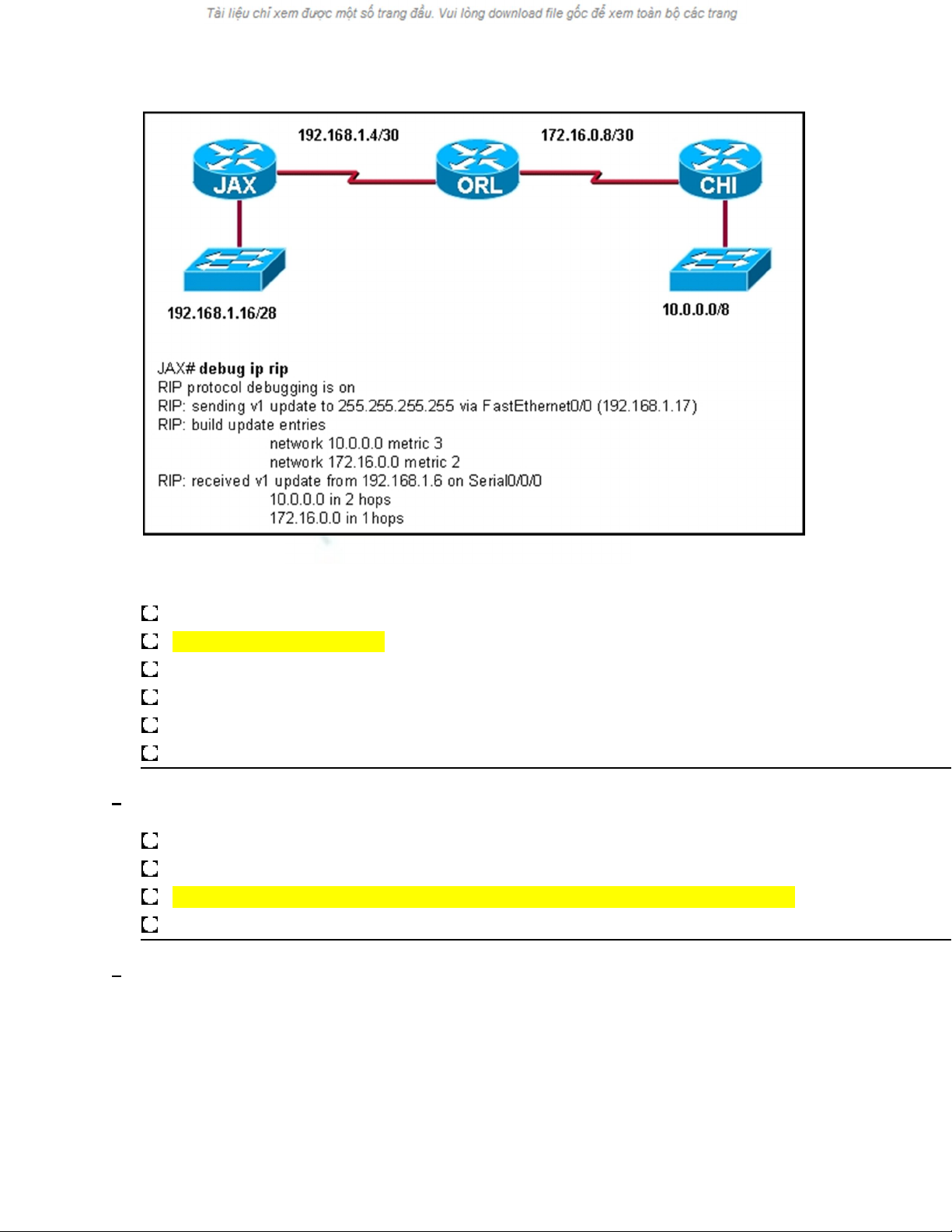 was entered on the JAX router. All routers are running the same version of RIP. Router CHI and