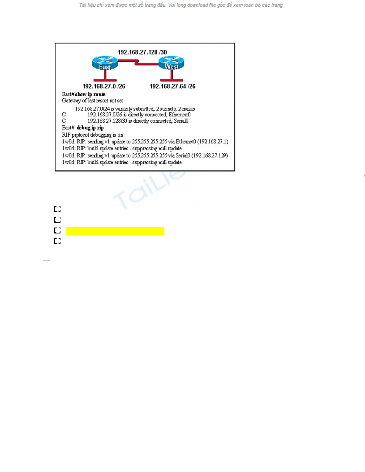 Refer to the exhibit. Routers East and West are configured using RIPv1. Both routers