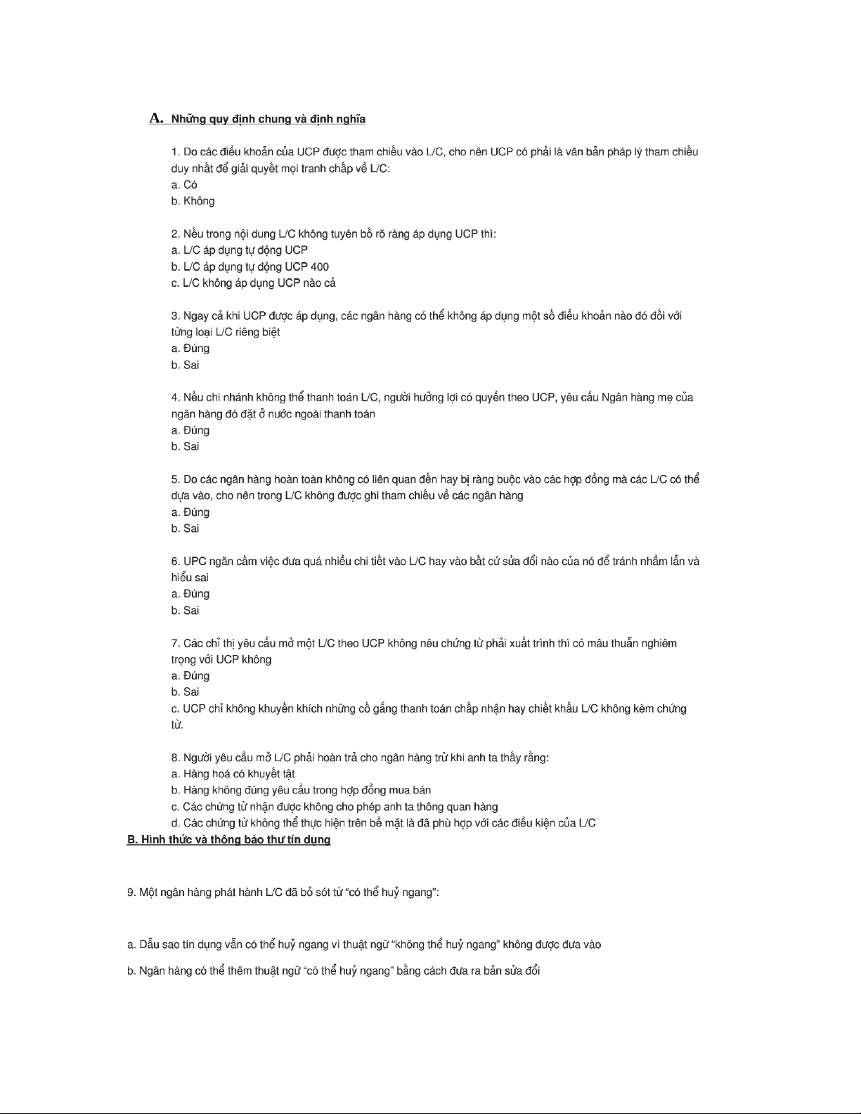 450 Câu hỏi trắc nghiệm Thanh toán và tín dụng quốc tế