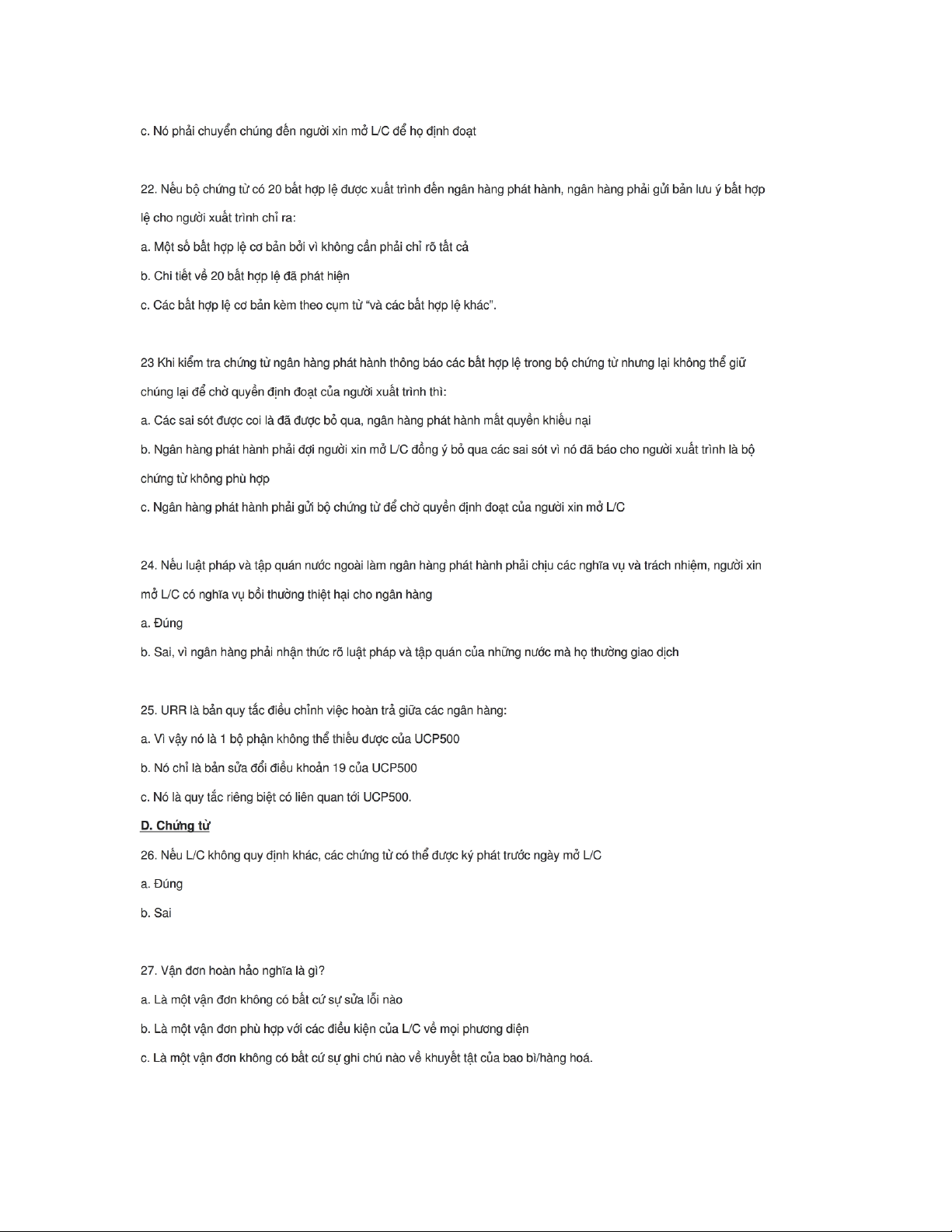 Trắc nghiệm thanh toán quốc tế kèm đáp án