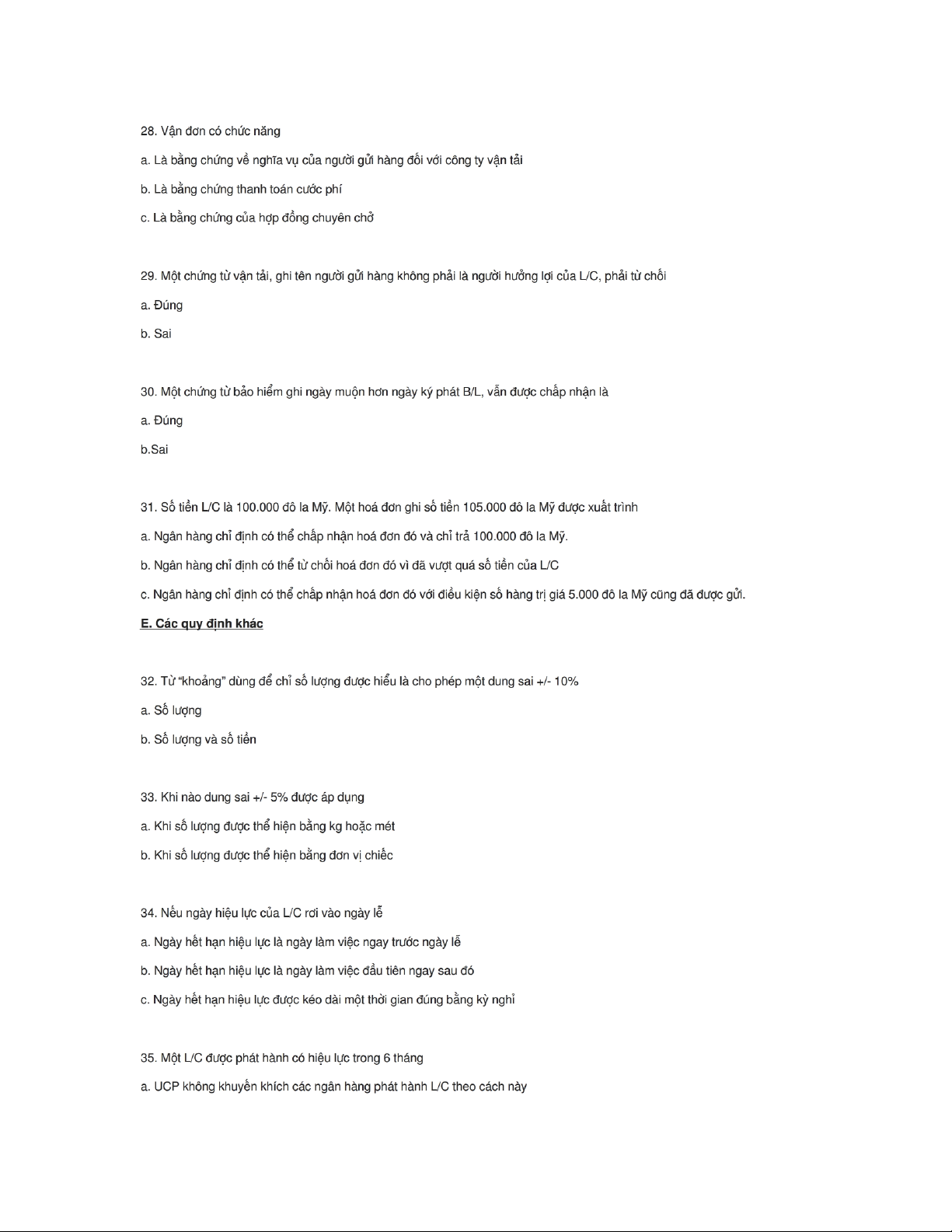 Trắc nghiệm và lời giải thanh toán quốc tế