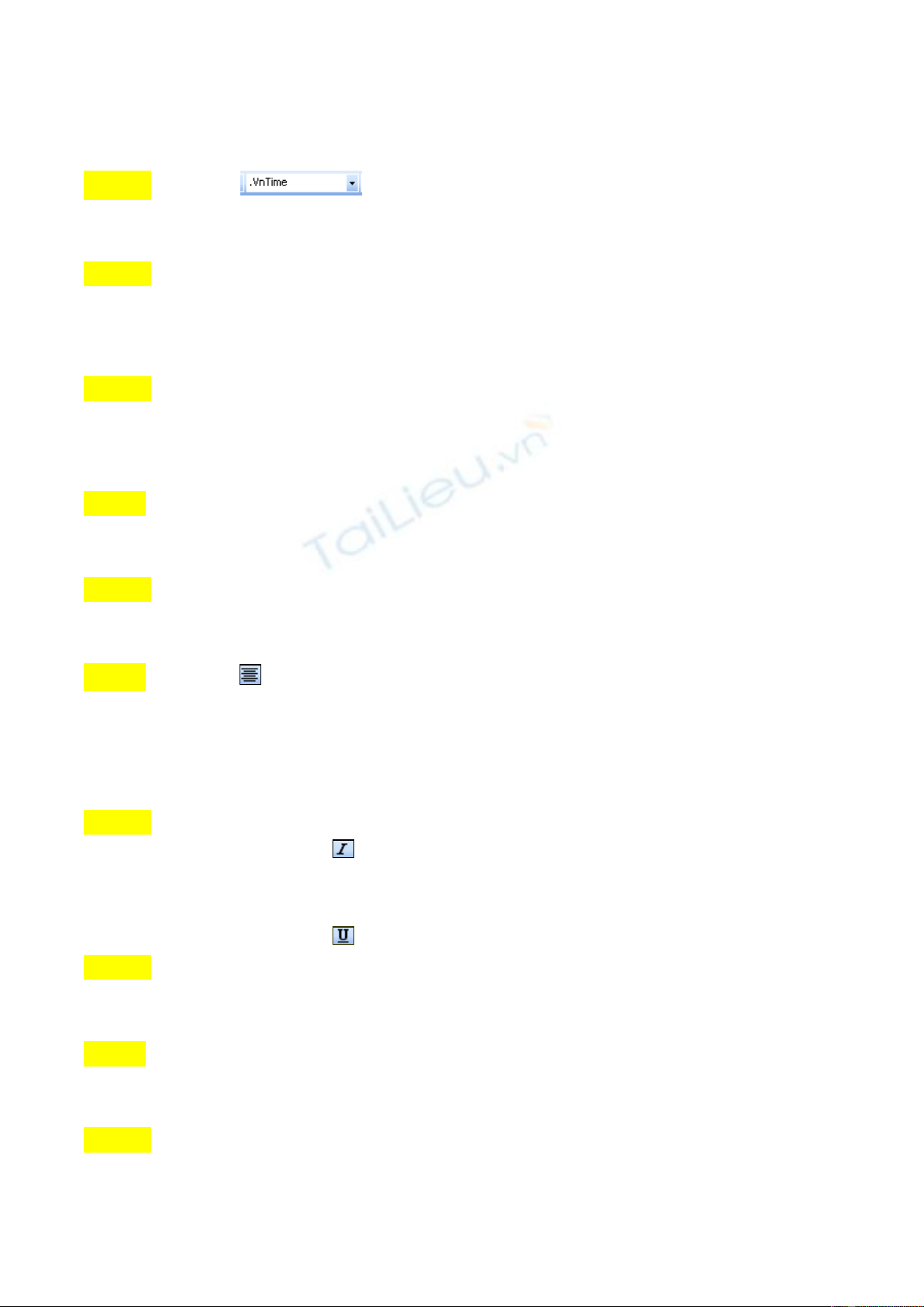 Câu 37: Một số thuộc tính định dạng kí tự cơ bản gồm có: