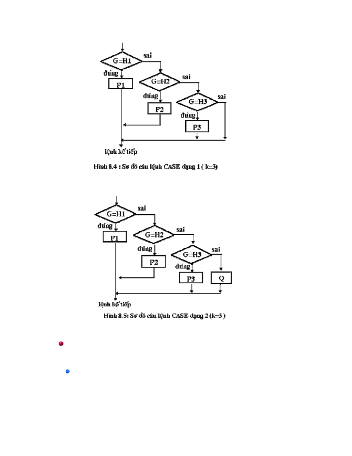 Hình 8.4 và hình 8.5 là các sơ đồ của lệnh CASE vẽ cho trường hợp k=3.