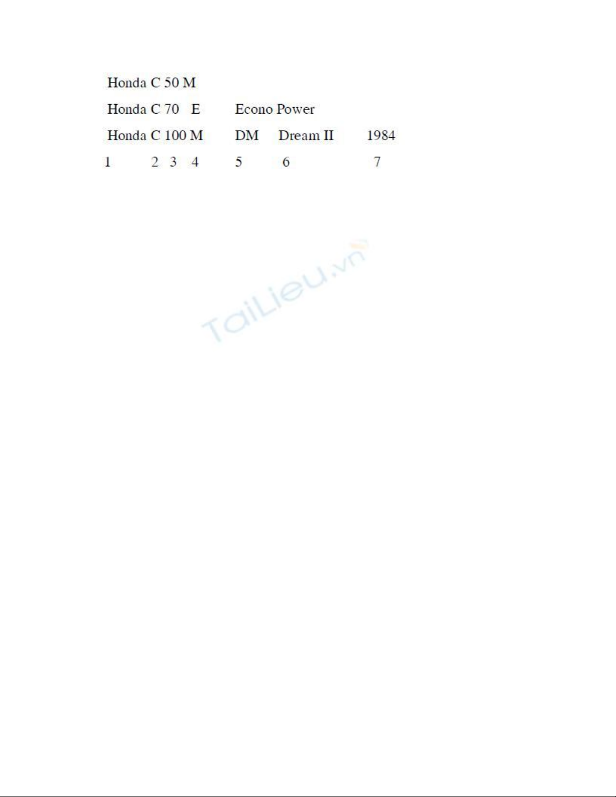 1- Hiệu xe thường đại diện cho loại động cơ 4 thì