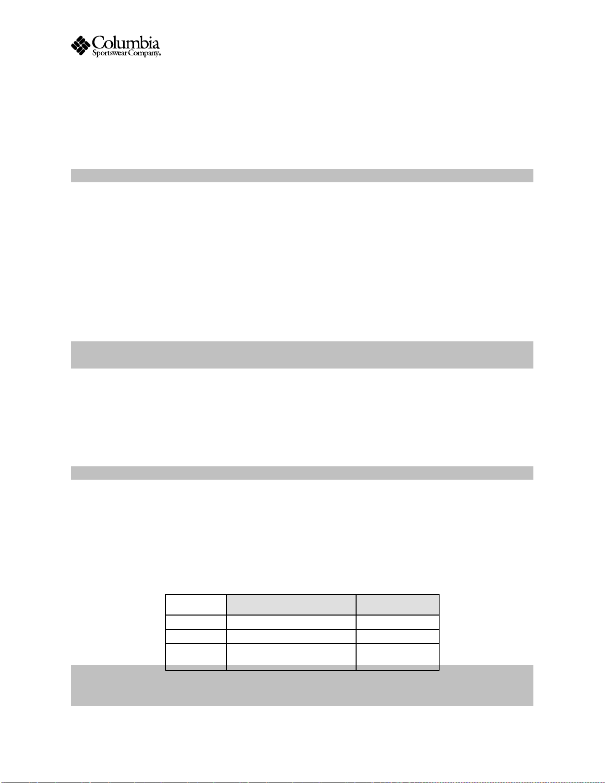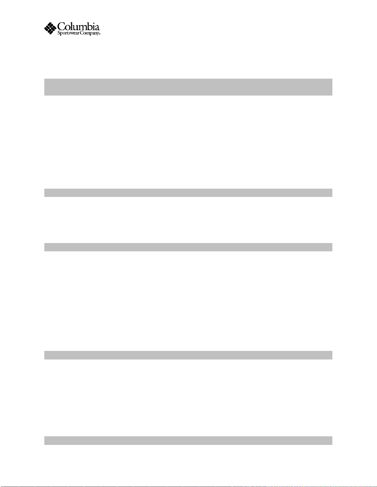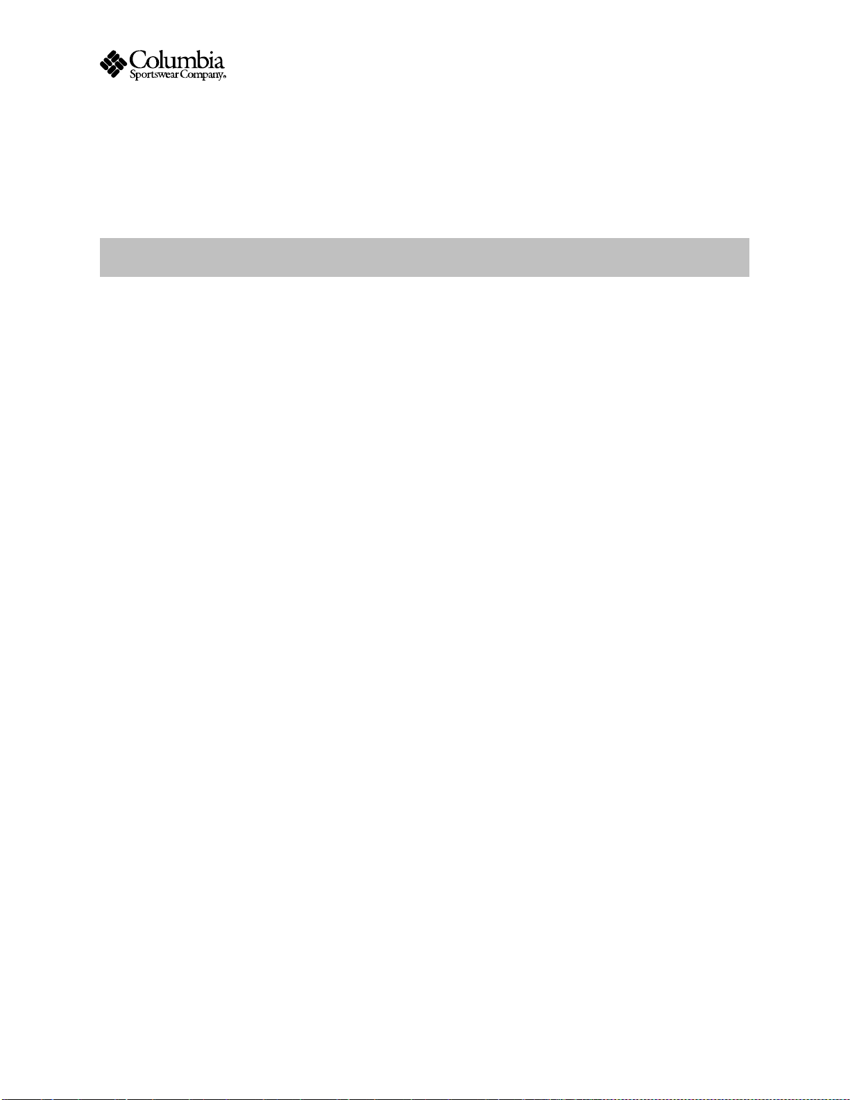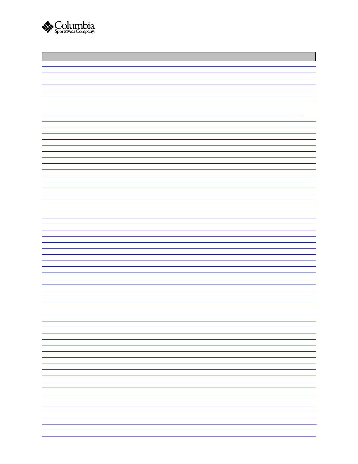 This is a confidential and proprietary information of Columbia Sportswear Company. You agree that you will not disclose this information to any third party or use it for any purpose other than