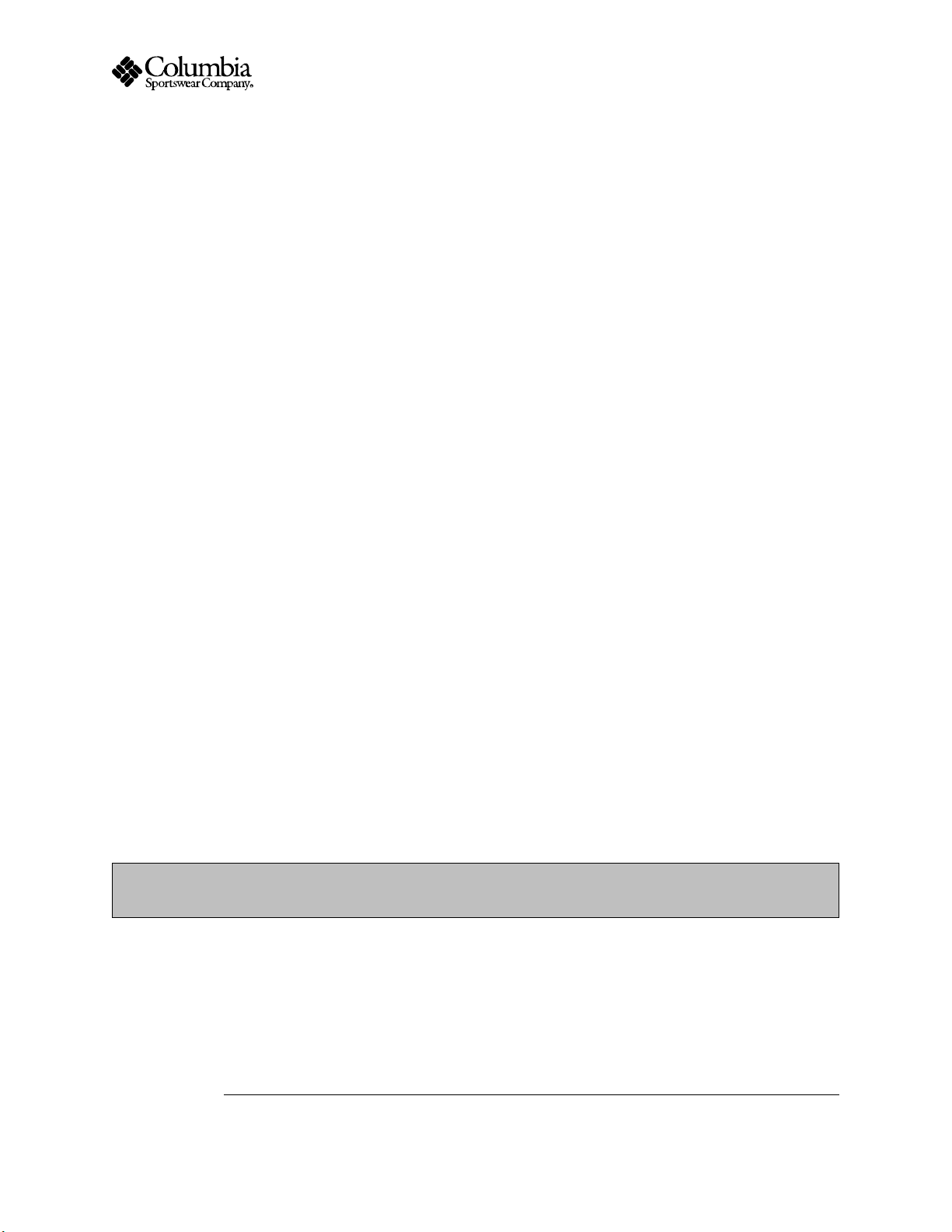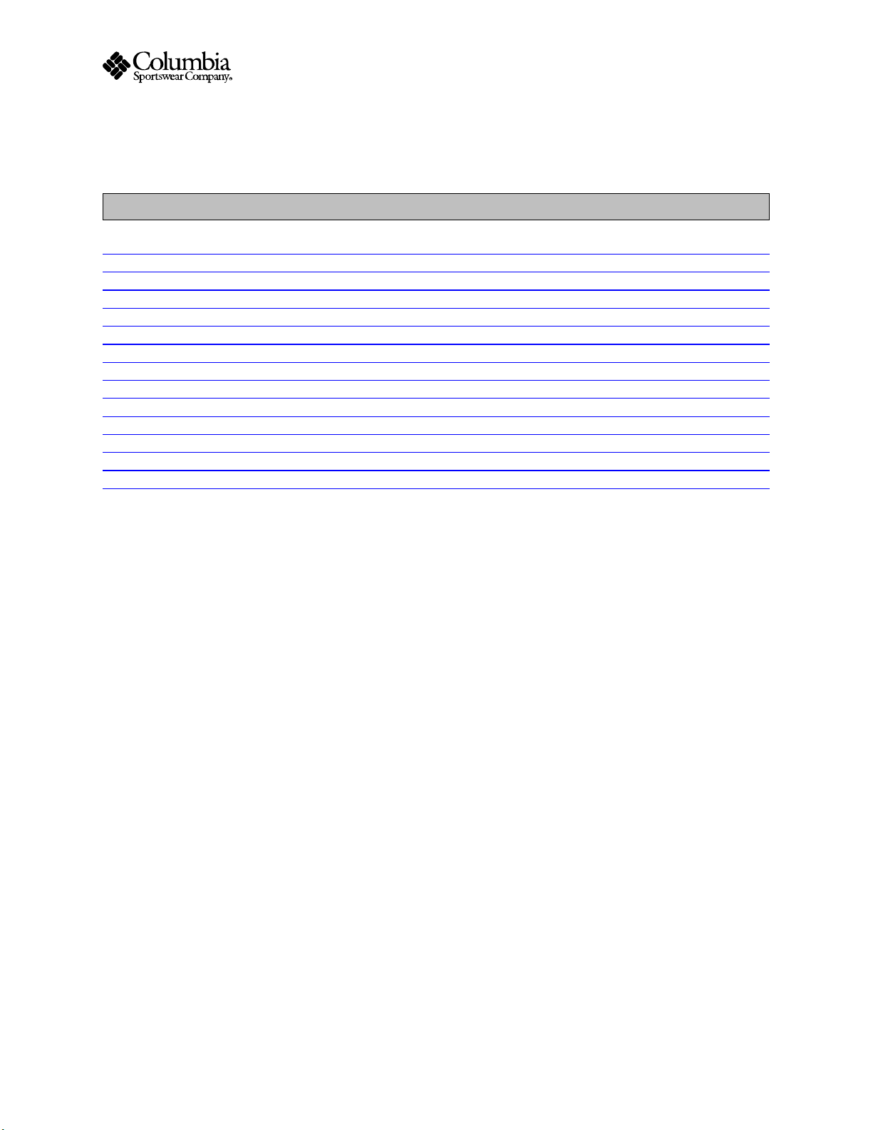 This is a confidential and proprietary information of Columbia Sportswear Company. You agree that you will not disclose this information to any third party or use it for any